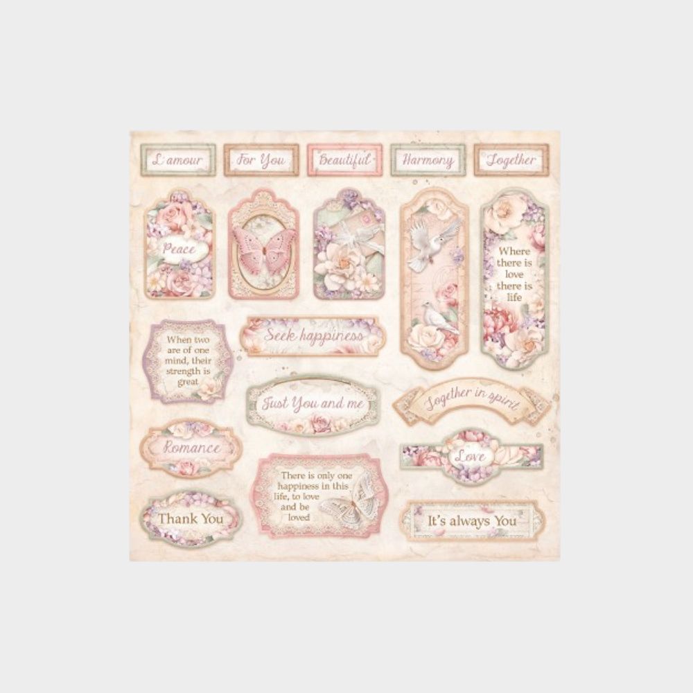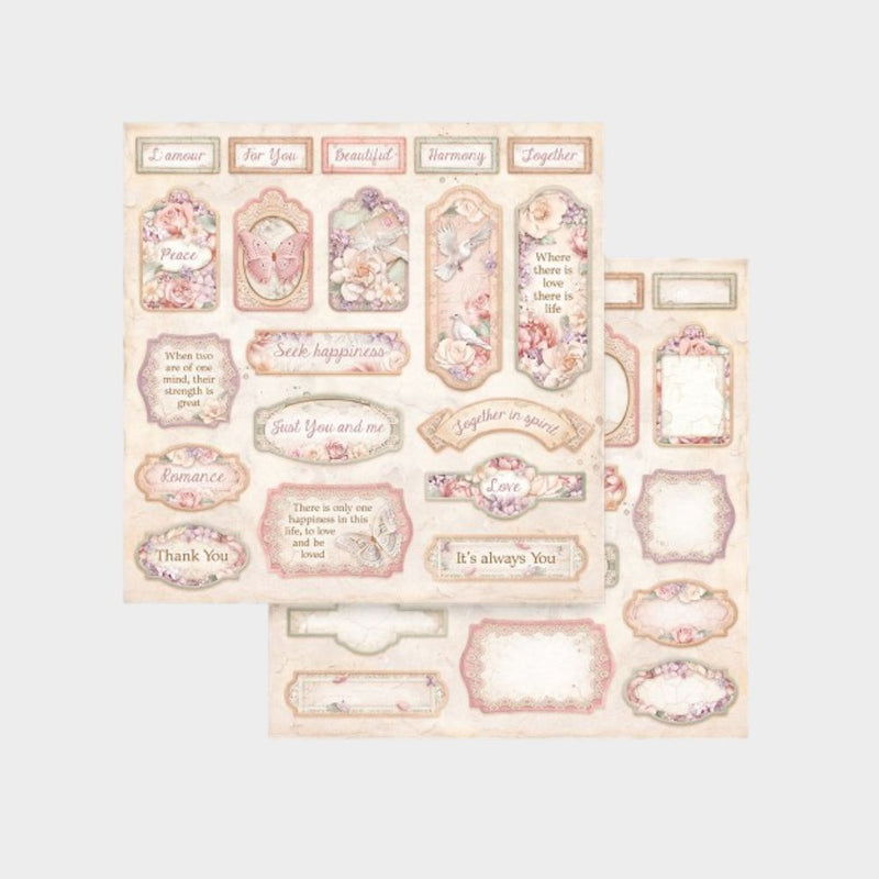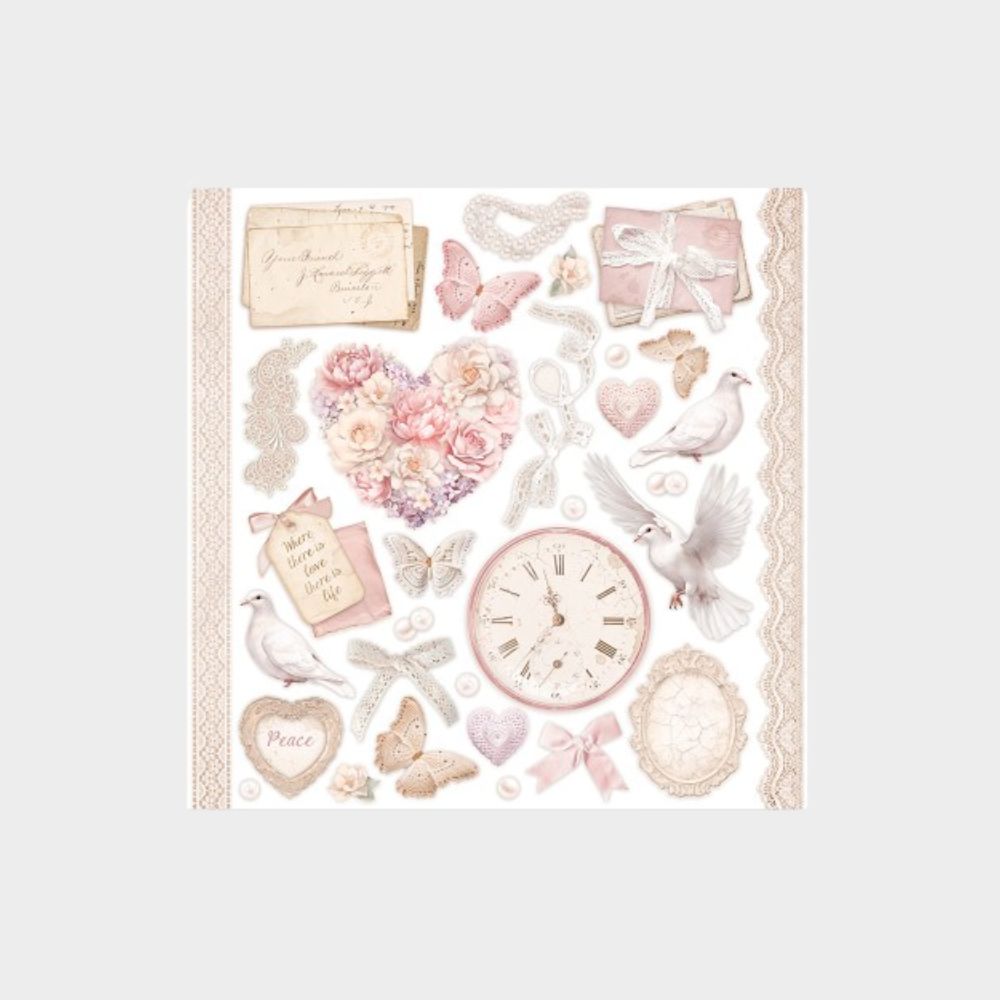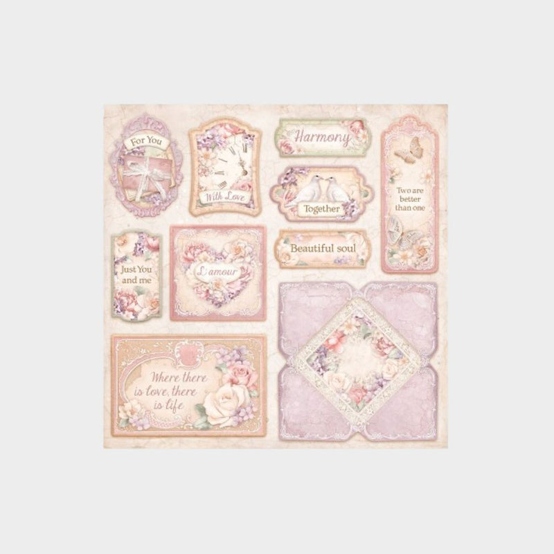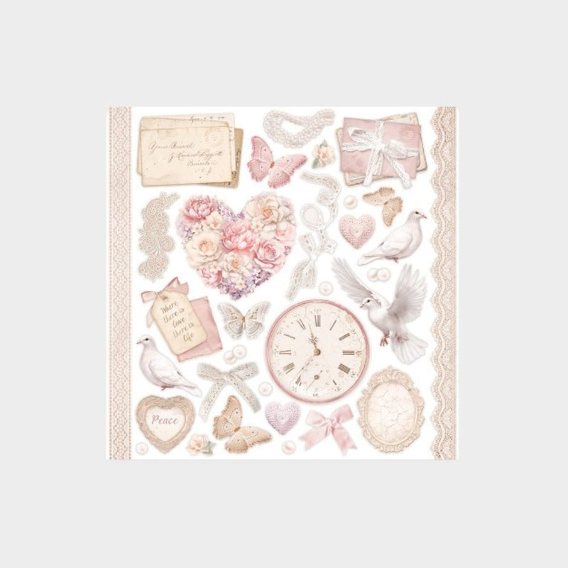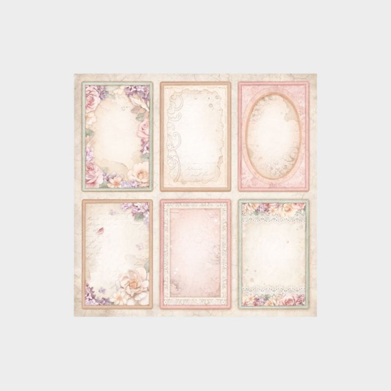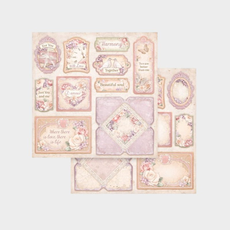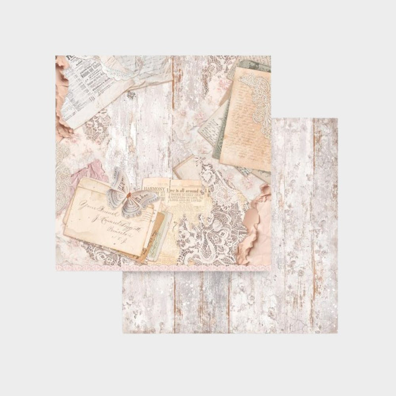 Set 10 Papeles Scrap 30x30cm, Colección Romance Forever modelo Reloj de la marca Stamperia.