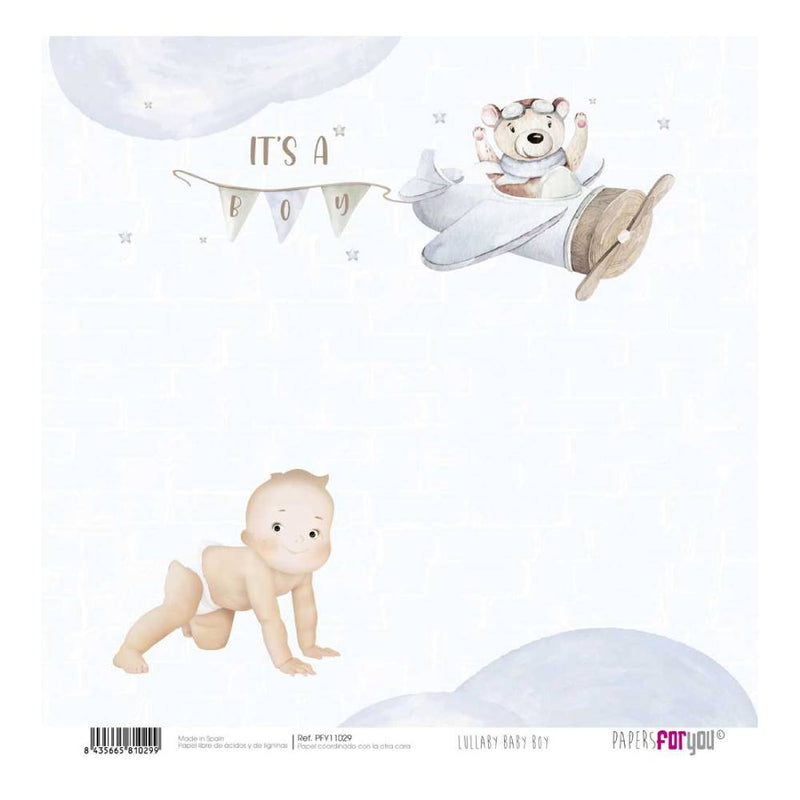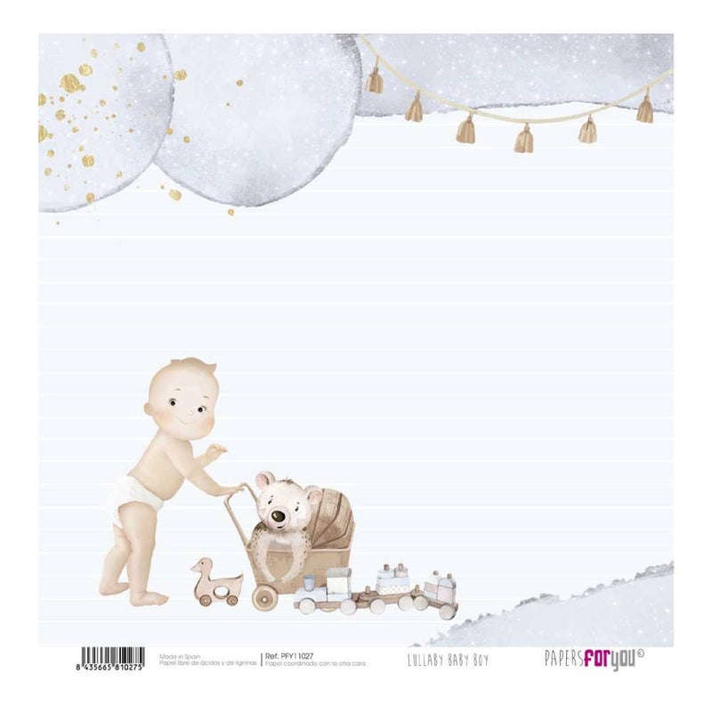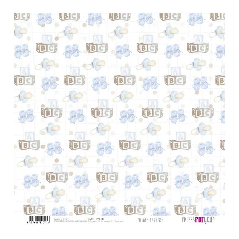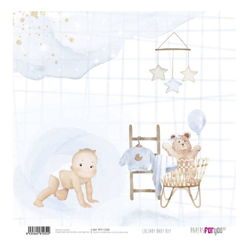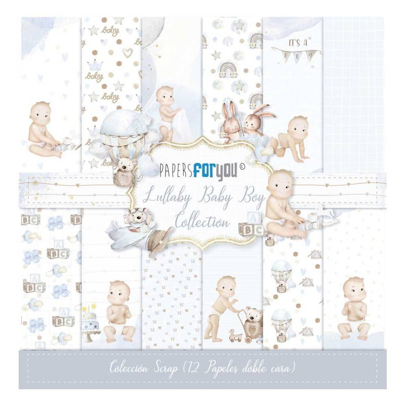 Bloc 12 Papeles Scrap Doble Cara 30x30cm Colección "Lullaby Baby Boy" de la marca Papers for you.