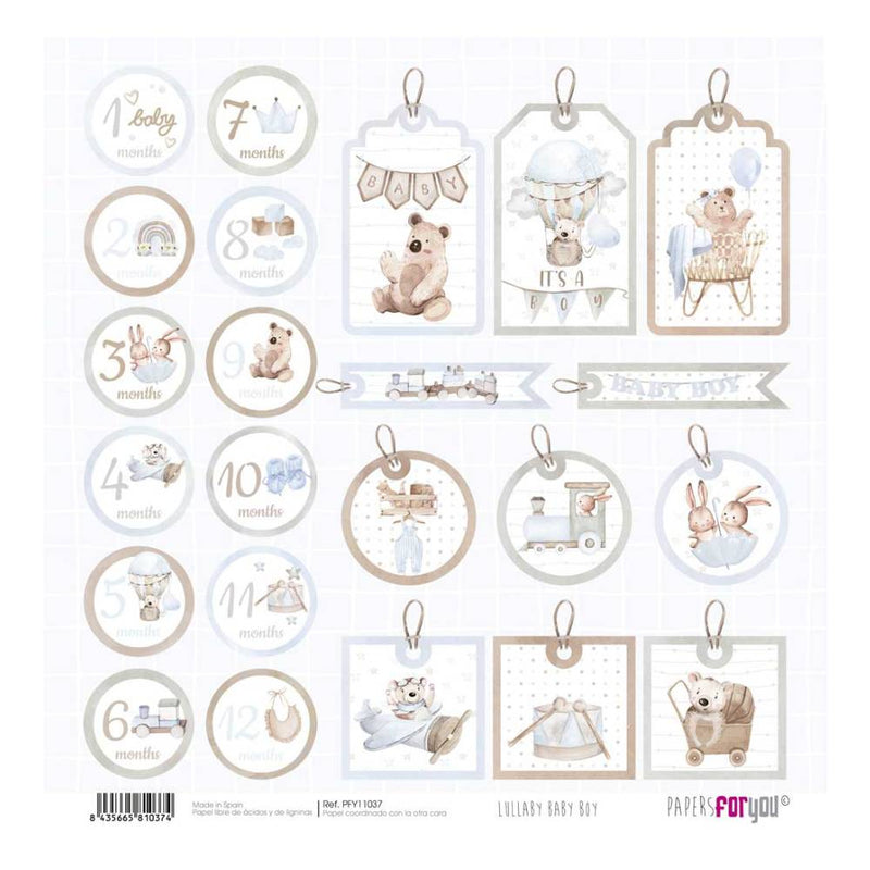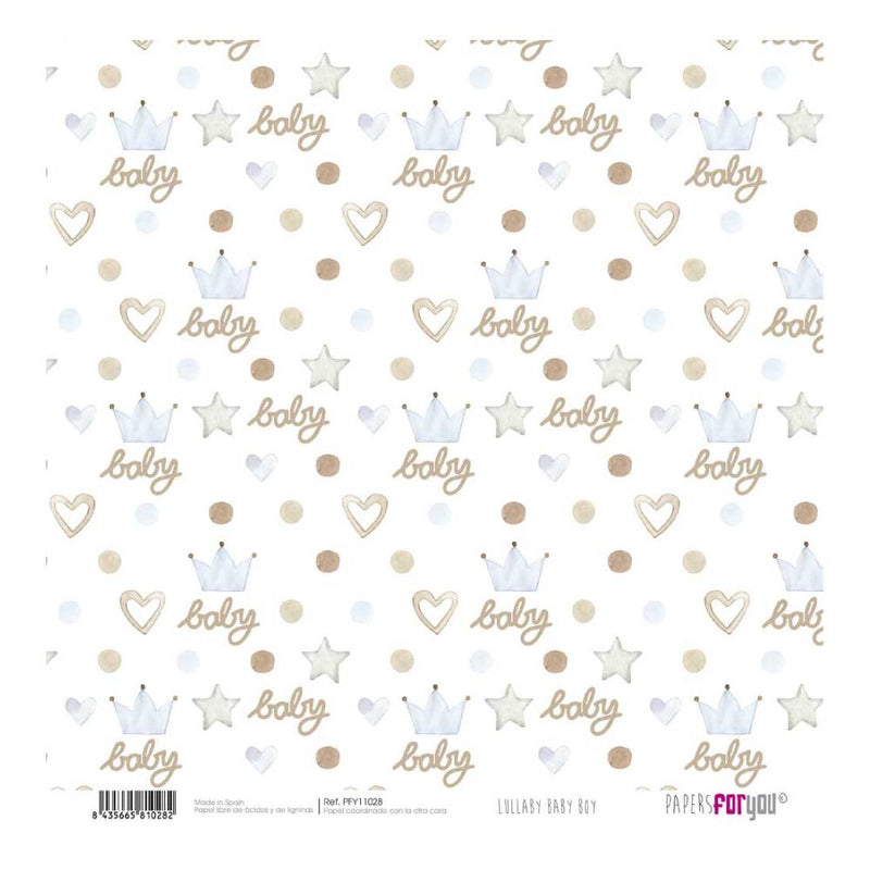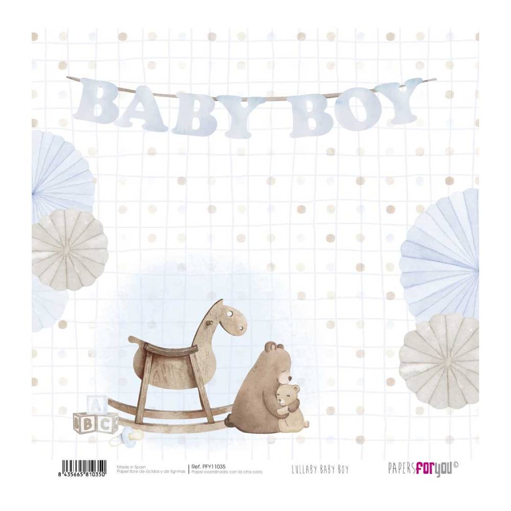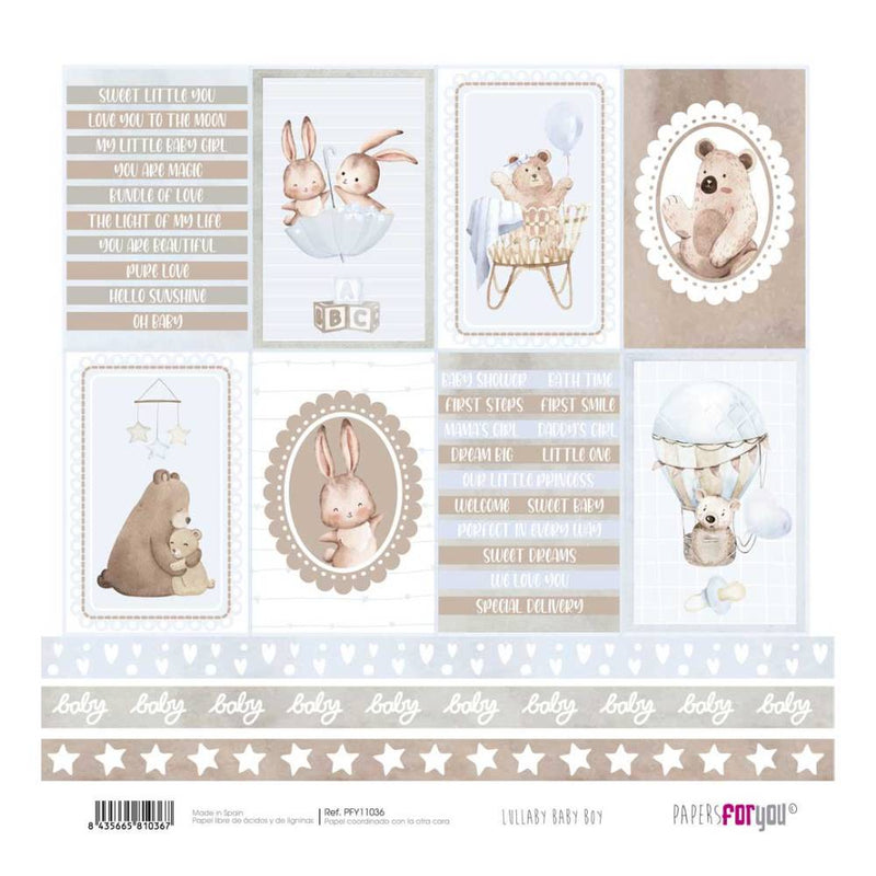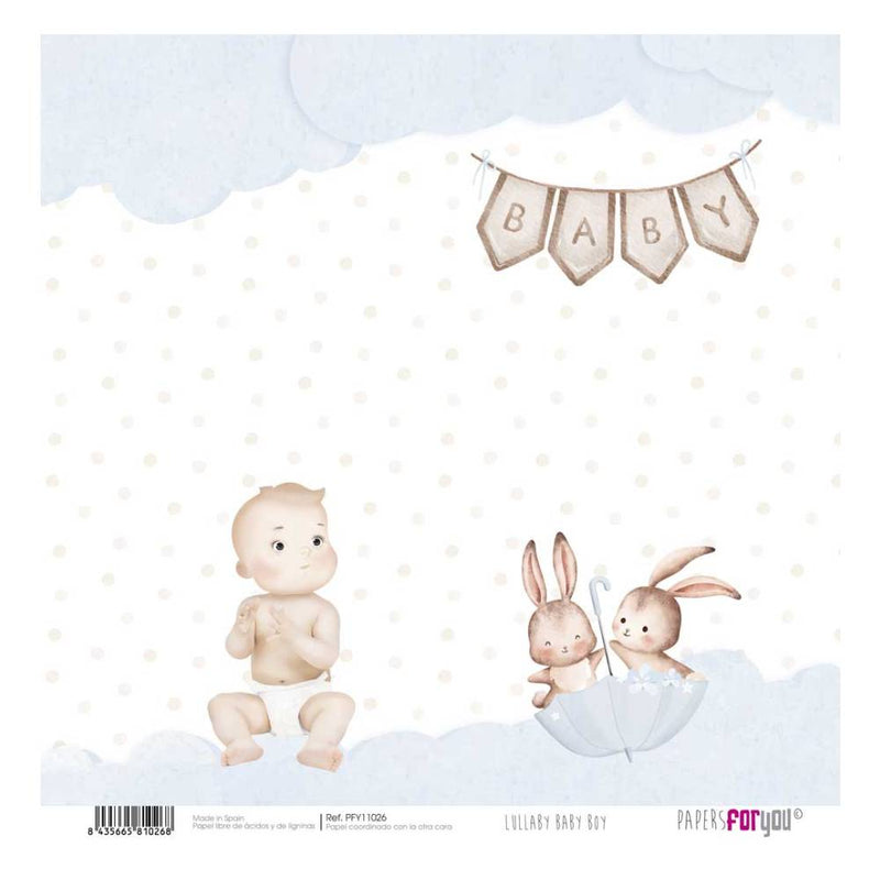 Bloc 12 Papeles Scrap Doble Cara 30x30cm Colección "Lullaby Baby Boy" de la marca Papers for you.