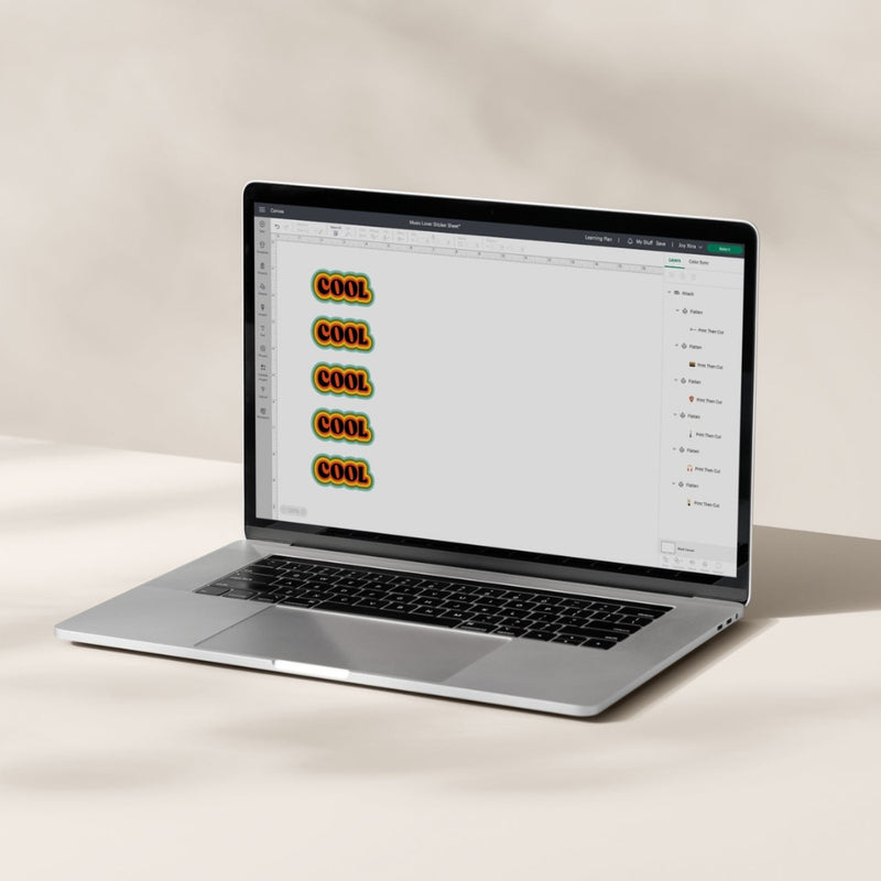 Imprime tus pegatinas doradas sin usar tapete de corte y personaliza diferentes elementos como vasos, botellas, el ordenador, el coche y casi cualquier superficie lisa de forma duradera.