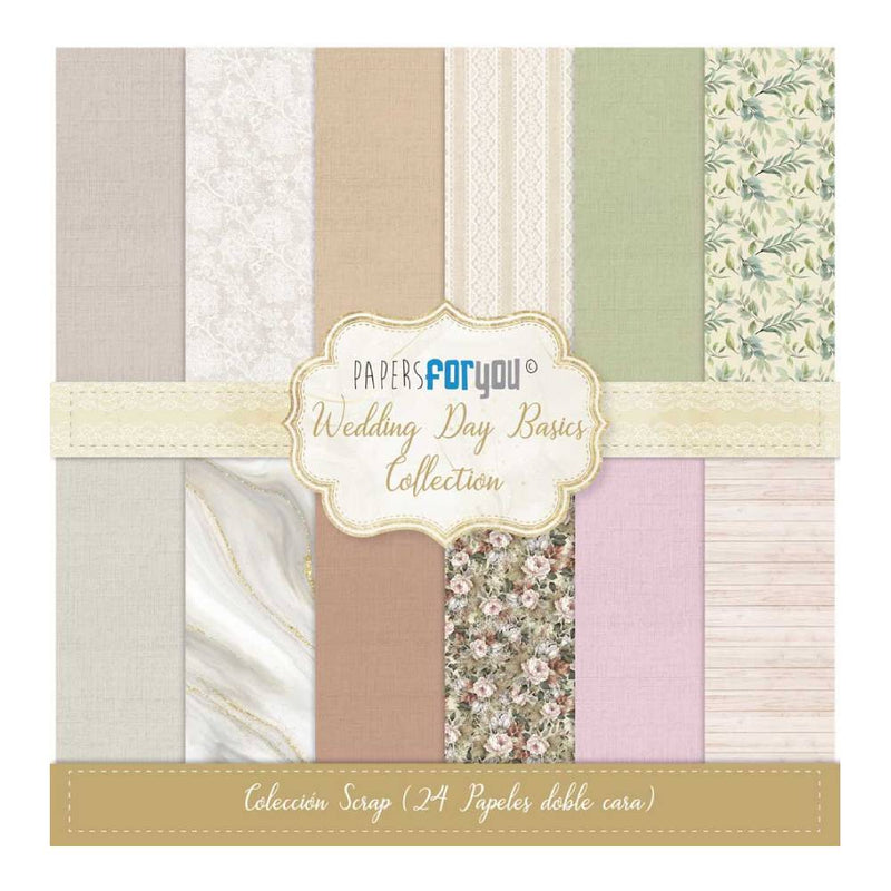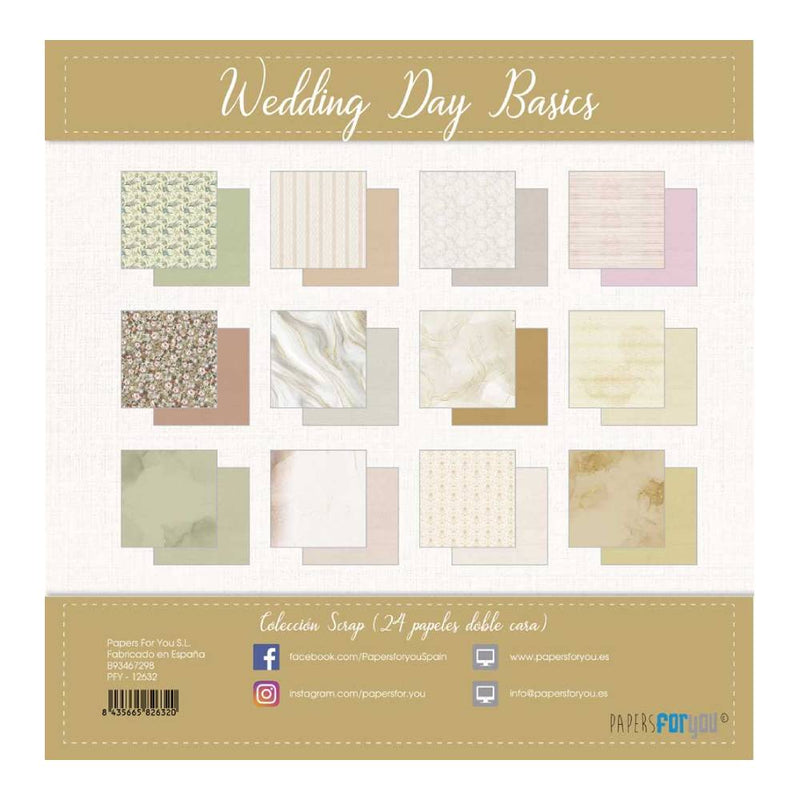 Set 24 Papel Scrap Doble Cara 20x20cm Wedding Day Basics de la marca Papers For You.