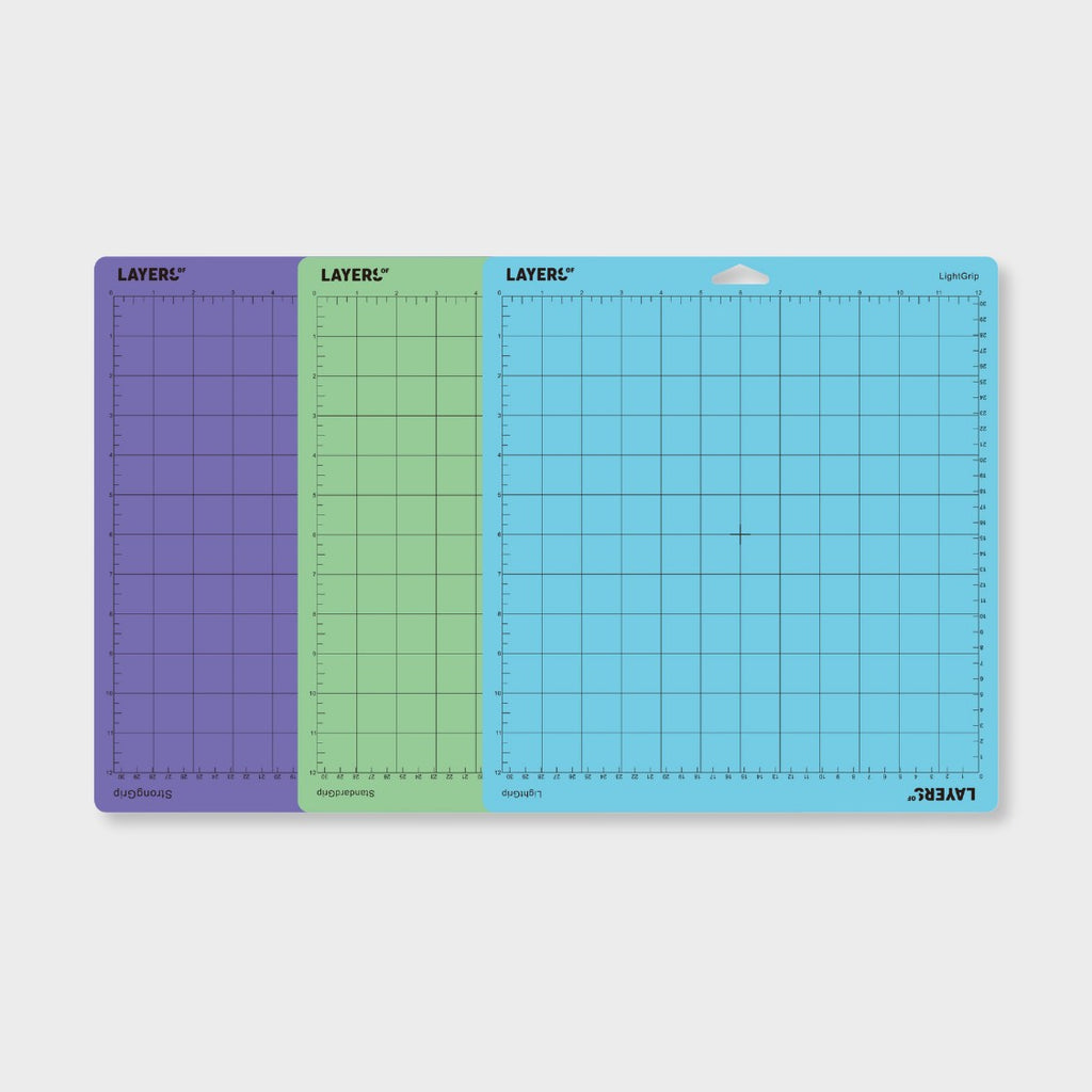 Ideal para tus proyectos de customización, estos 3 tapetes de adherencias variadas (suave, estándar y fuerte) sirven para recortar una gran variedad de materiales.