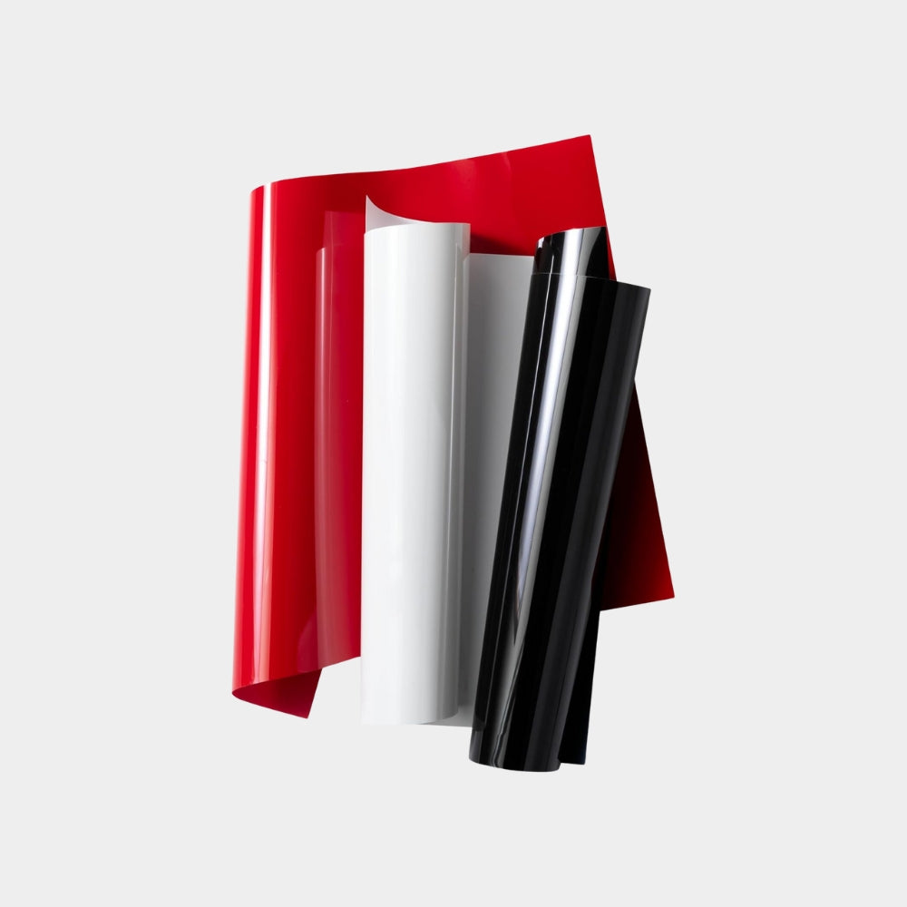 - Incluye 3 vinilos de 3 colores con acabado glitter: rojo, blanco y negro.