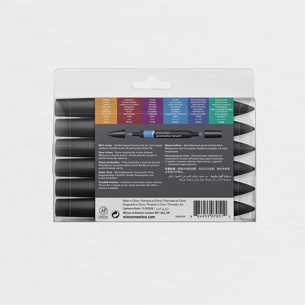 Set de 6 rotuladores BrushMARKER tonos profundos de Winsor & Newton.