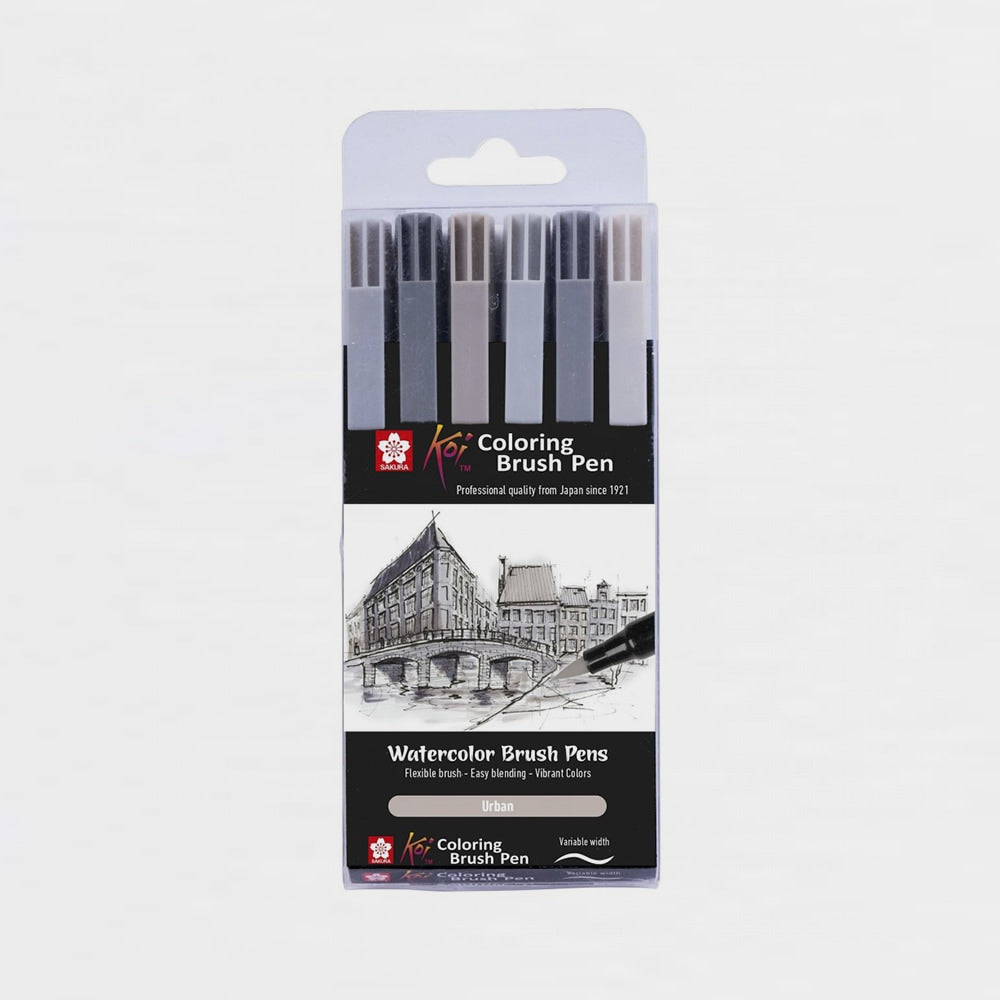 Set 6 Rotuladores Tonos Grises Sakura KOI Coloring Brush Pen