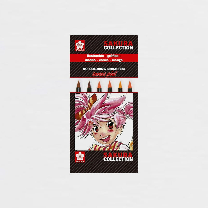 Set 6 rotuladores Sakura KOI Coloring Brush Pen tonos piel.