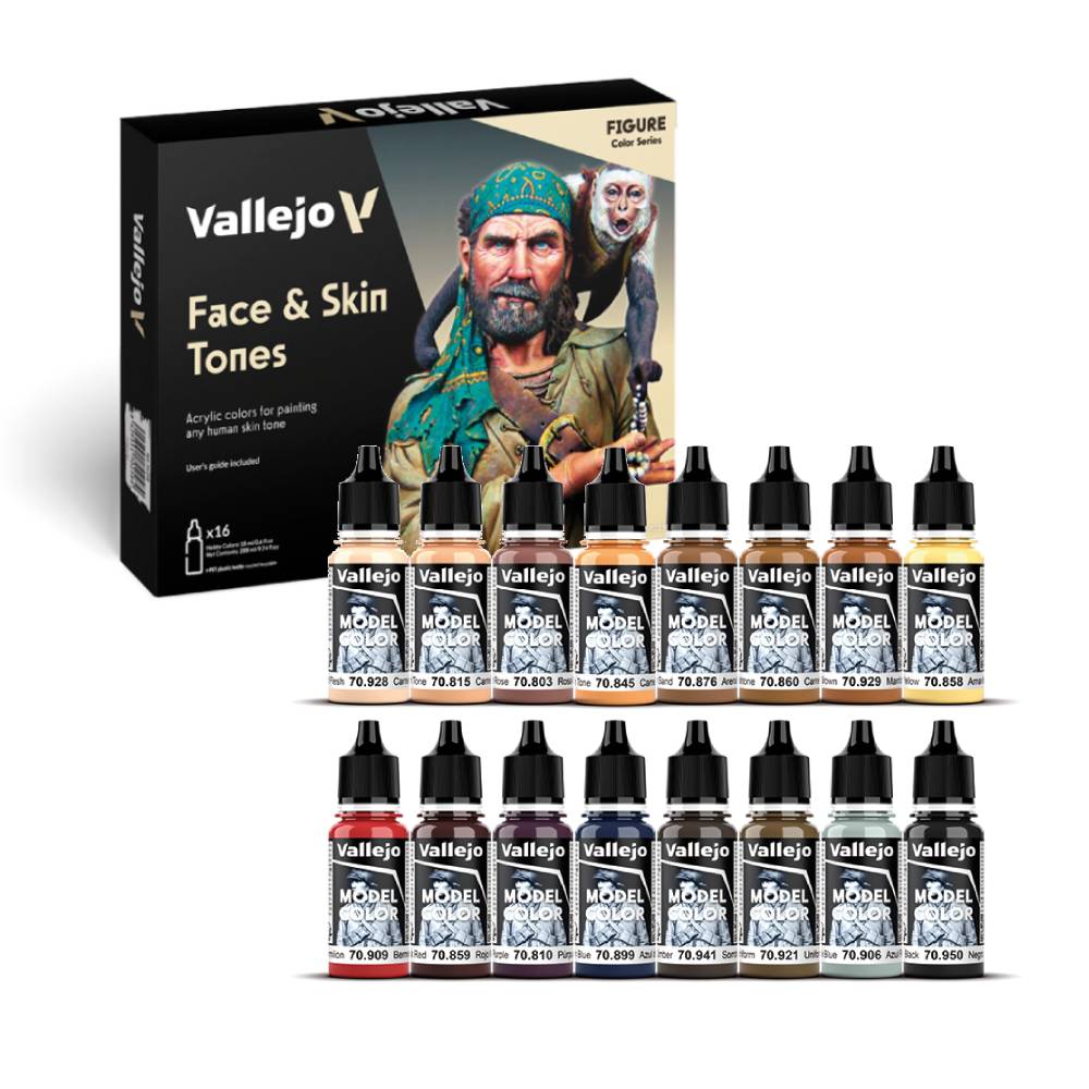 Ideal para figuras y miniaturas con pieles realistas. Esta selección de 16 acrílicos Model Color de Vallejo se escogió específicamente para representar todas las tonalidades de la piel humana. También se pueden mezclar los colores para conseguir transiciones suaves y acentuar facciones.