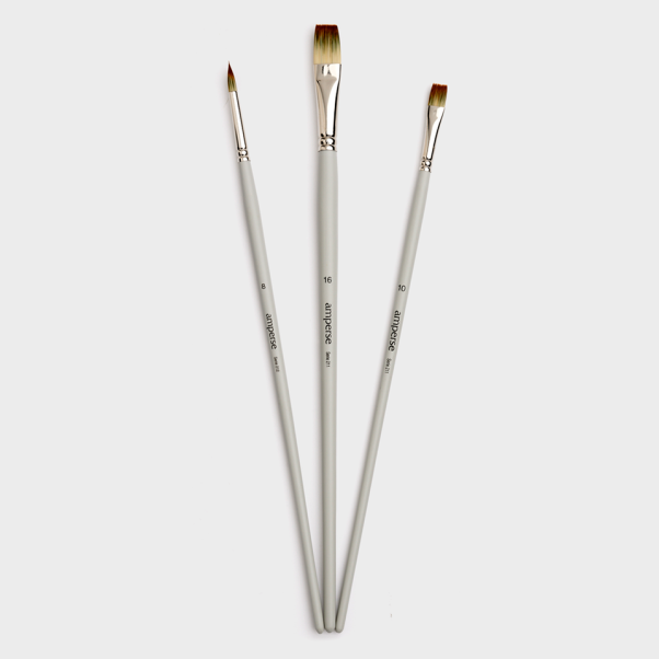 Set de 3 Pinceles para Pintura Acrílica con Punta Redonda y Plana de la Marca Amperse