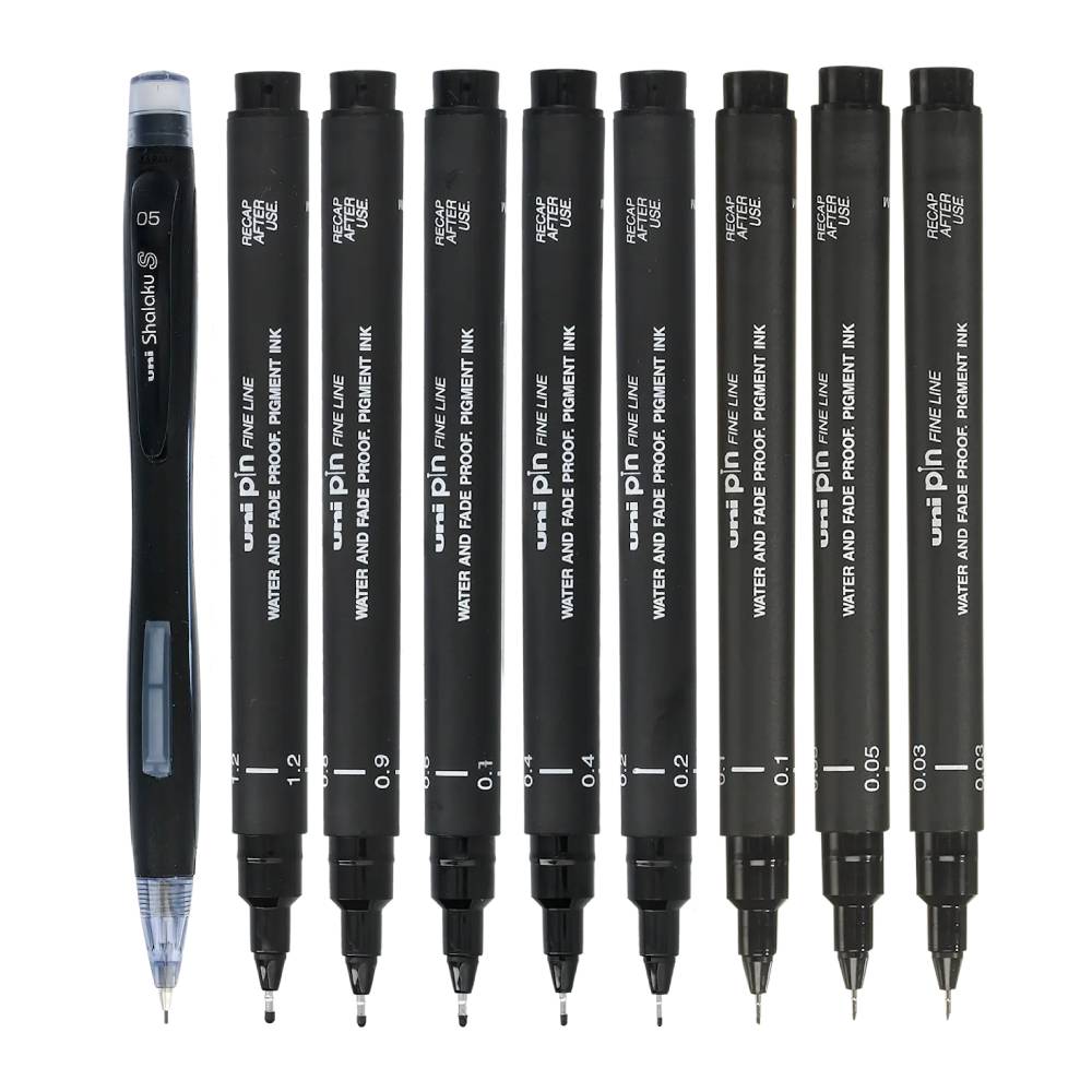 • 8 Rotuladores Calibrados Uni-Pin de color Negro:
