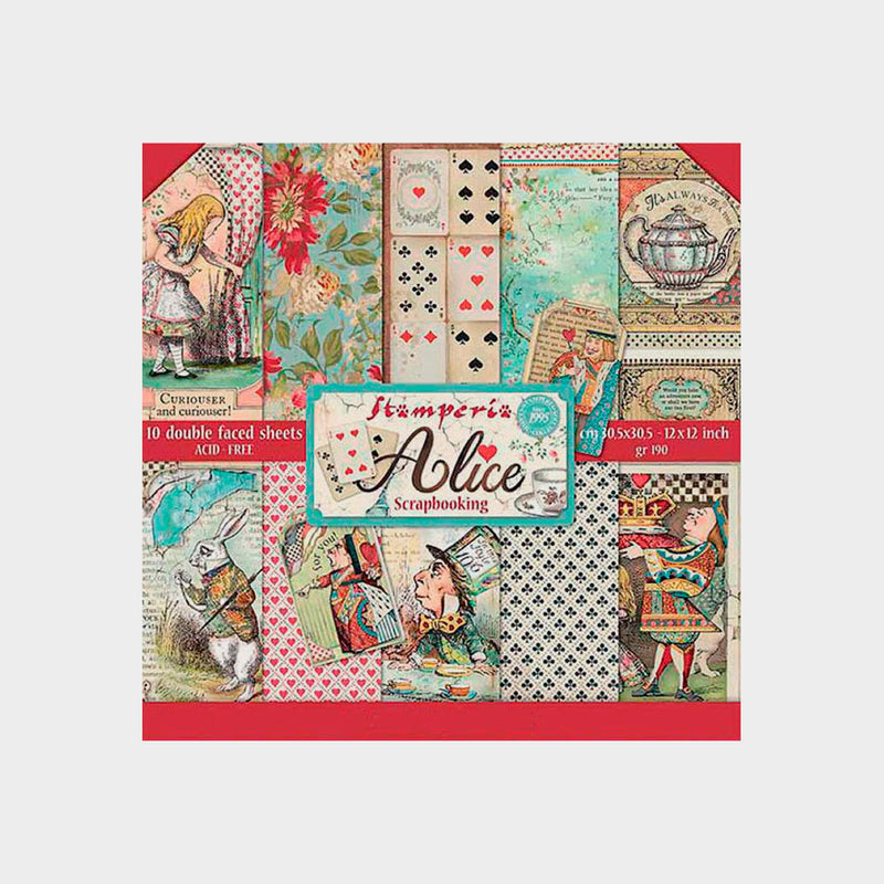 Set de 10 papeles de scrapbooking de la colección 'Alice' 30,5x30,5cm de la marca Stamperia.