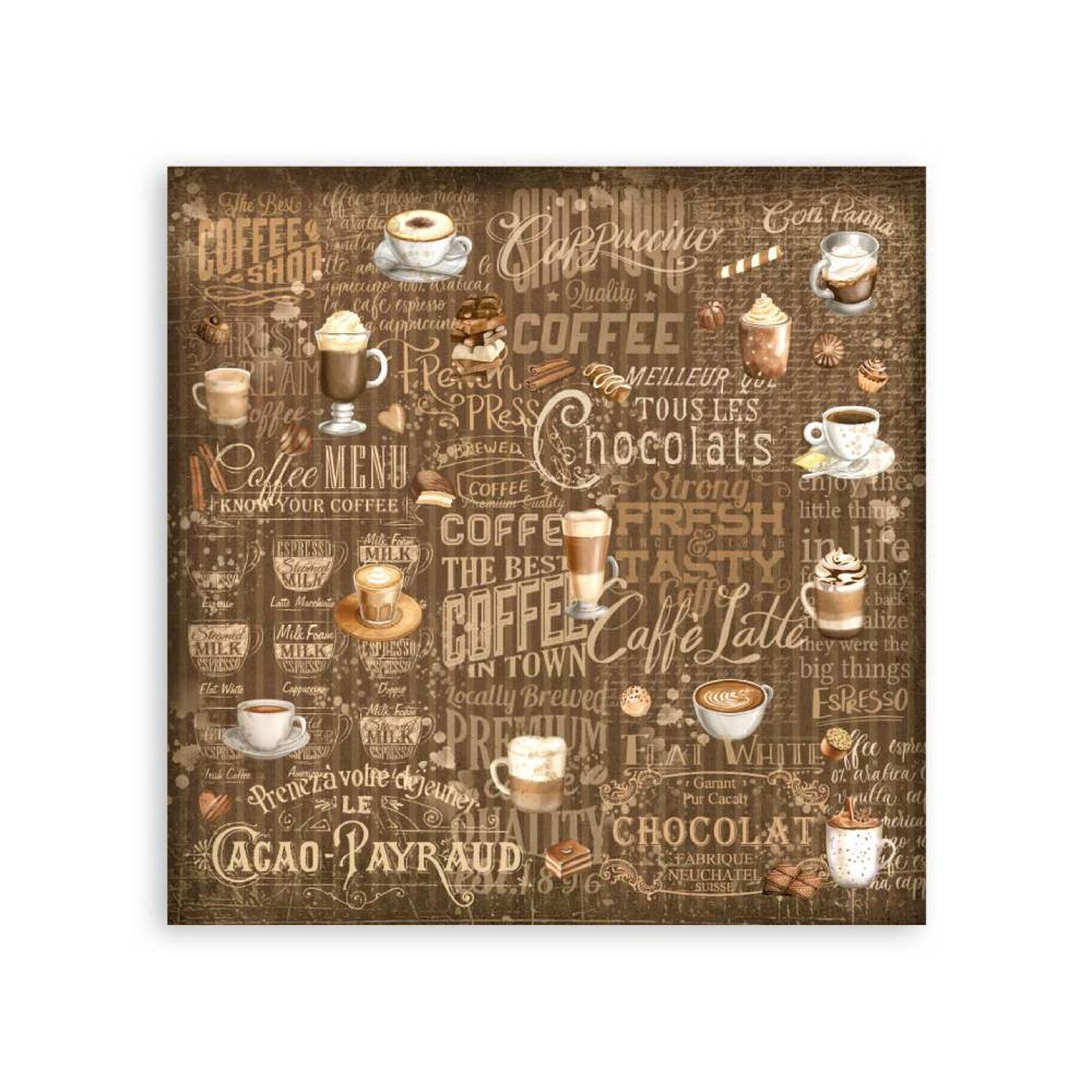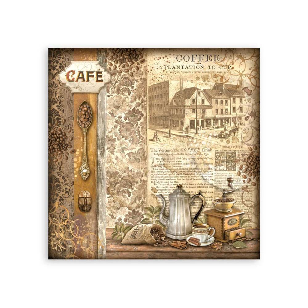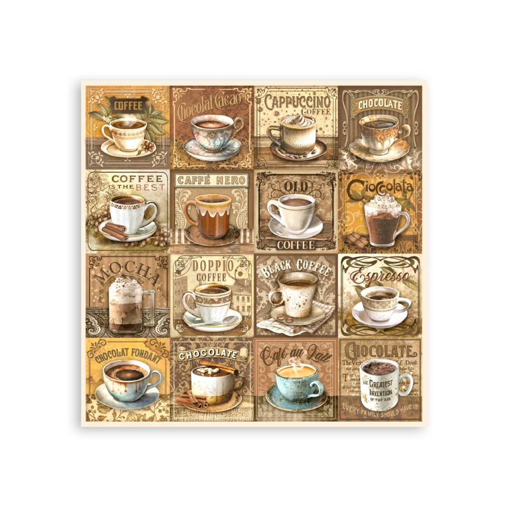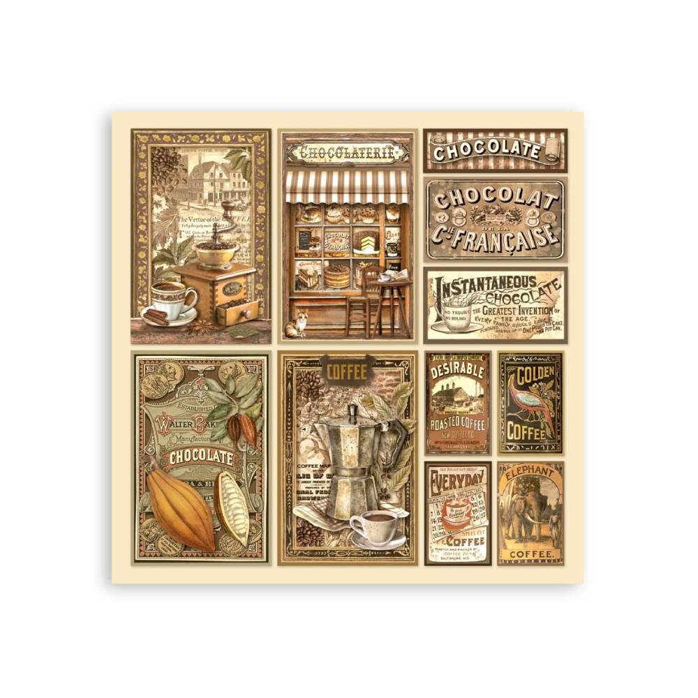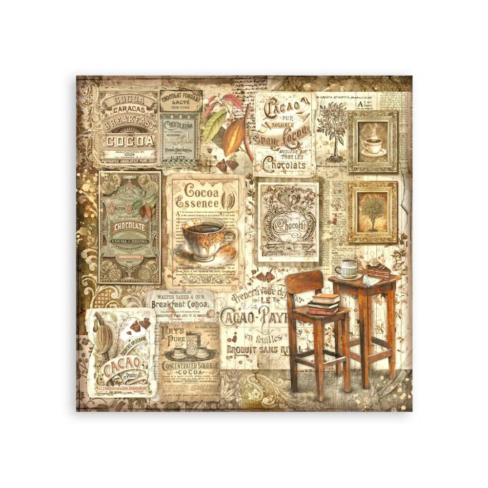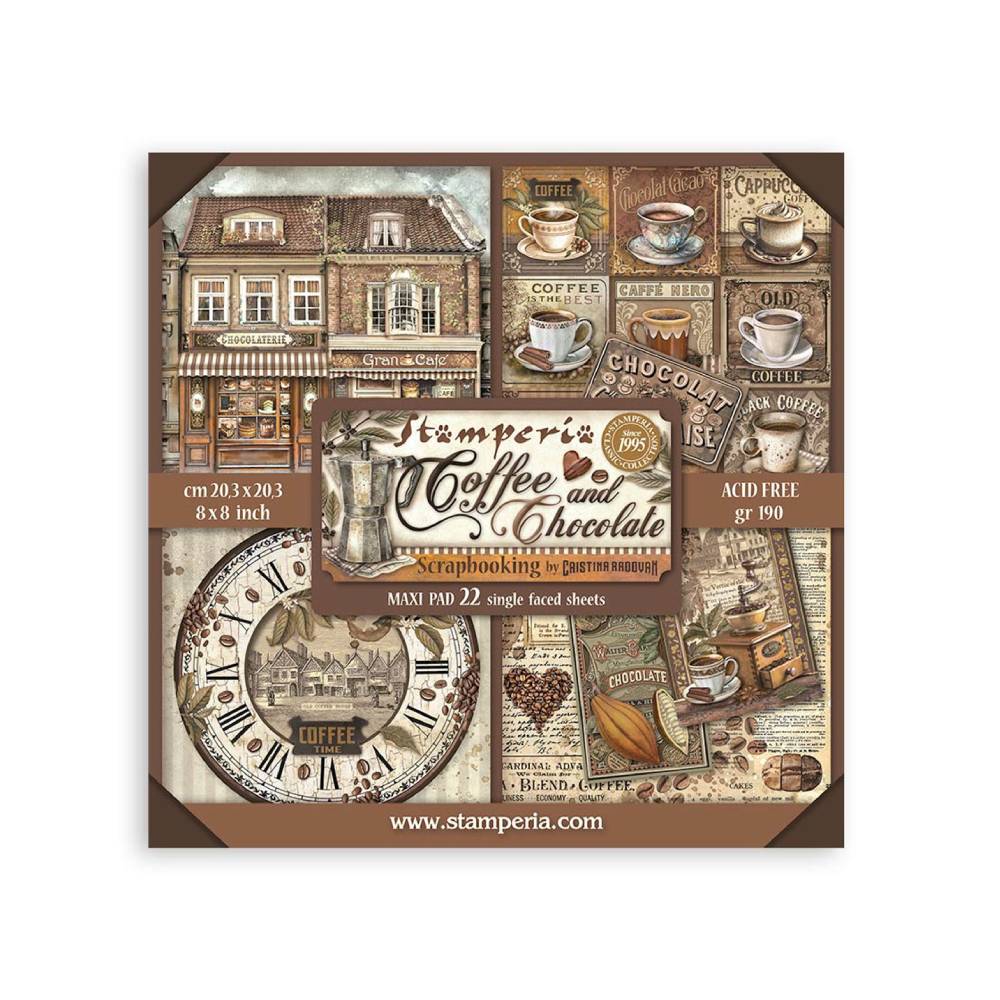 La colección "Coffee And Chocolate" de la línea Stamperia Classic fue diseñada por la artista Cristina Radovan. Los diseños son elegantes y armoniosos. Se combinan detalles cotidianos con bellas escenas antiguas. Si buscas crear composiciones clásicas esta temática acogedora es la adecuada.