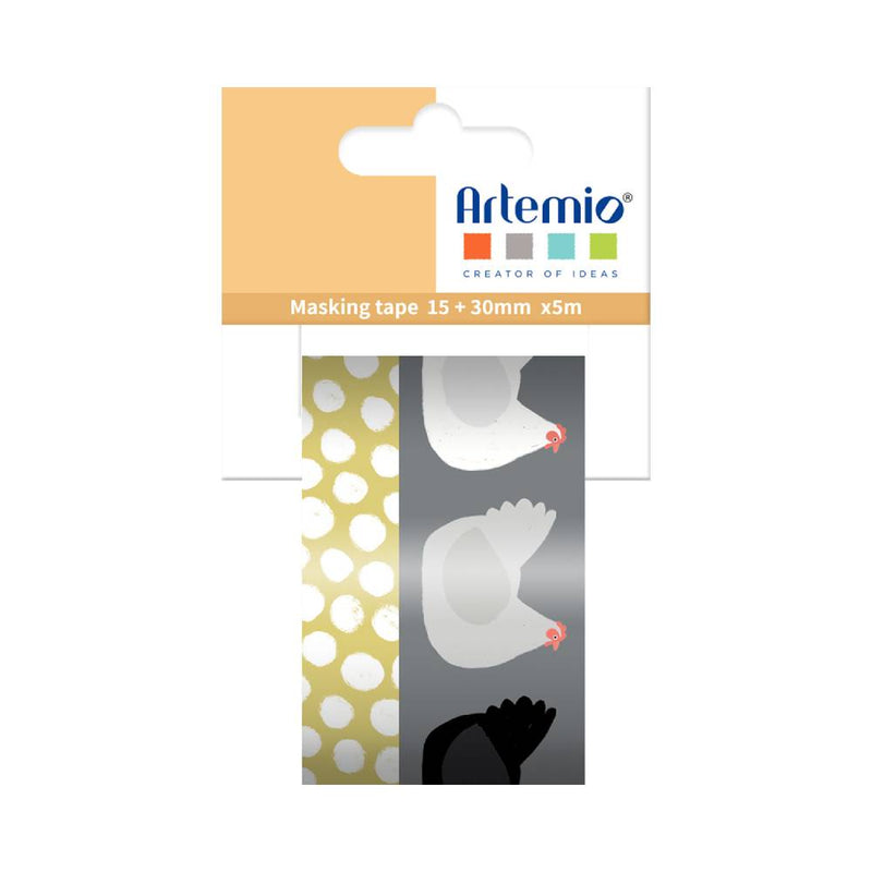 Cinta Adhesiva Washi Tape Gallinas y Huevos, Colección Saute-Mouton de la marca Artemio.