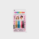 Descobre as 6 Barras de Maquilhagem Pequenas da marca Snazaroo. Estas barras de pintura facial sao perfeitas para qualquer festa! Sao faceis de usar, hipoalergenicas e nao toxicas, ideais para as tuas aventuras de maquilhagem. Com cores vibrantes como Branco, Preto, Rosa, Ouro, Prata e Turquesa, podes soltar a tua criatividade e criar maquilhagens incríveis. E o melhor de tudo, sao faceis de limpar, basta lavar com agua e sabao. Lembra te de usar sob a supervisao de um adulto, e guardar sempre no seu envase original, longe da luz solar. Diverte te com estas barras de maquilhagem e deixa a tua imaginacao voar!