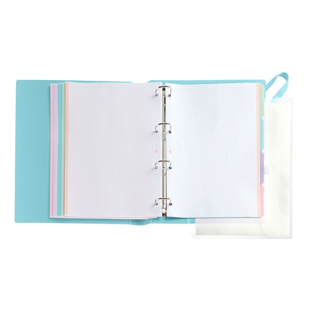 Pasta de argolas A4 Miquelrius com recargas azul-celeste