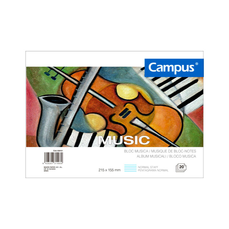 Este Bloco de Música A5 com Pauta Normal da marca Campus e o material escolar ideal para as as tuas aulas de música. Com uma capa flexível em cartao no tamanho A5 e folhas pautadas em pentagrama, este bloco e perfeito para os teus apontamentos musicais.