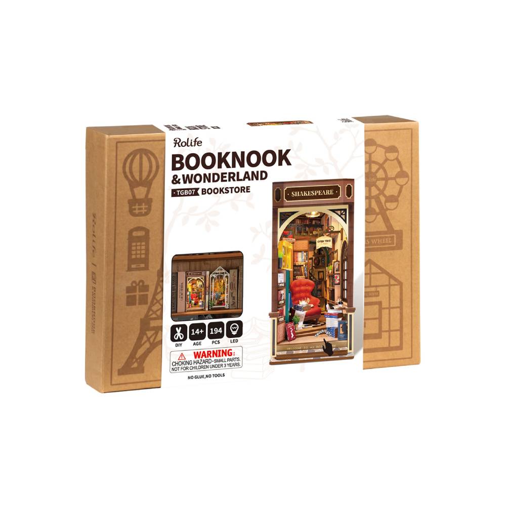 Descubre la Maqueta Sujetalibros Bookstore de Robotime, un proyecto perfecto para los amantes de los libros y las manualidades. Este Book Nook reproduce una encantadora librería en miniatura, llena de estanterías, libros diminutos y detalles realistas que te harán sentir dentro de un acogedor rincón literario. ¡Un diseño perfecto tu estantería!
