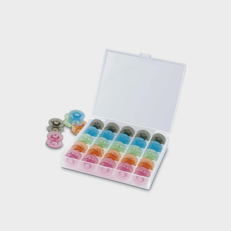 Nesta Caixa de 25 bobines de cores da marca Alfa, vais encontrar um conjunto de ferramentas de costura essenciais para a tua maquina de costura. As bobines de plastico vazias sao universais e de alta qualidade, ideais para o teu kit de costura. Cada bobine tem 2 x 1 cm e vem em varios tons vibrantes: verde, amarelo, azul, roxo e vermelho. Com este set de bobines, teras à tua disposicao 25 unidades coloridas para dar vida aos teus projetos de costura. Adiciona estas ferramentas de costura à tua colecao e prepara te para criar pecas únicas e cheias de cor!
