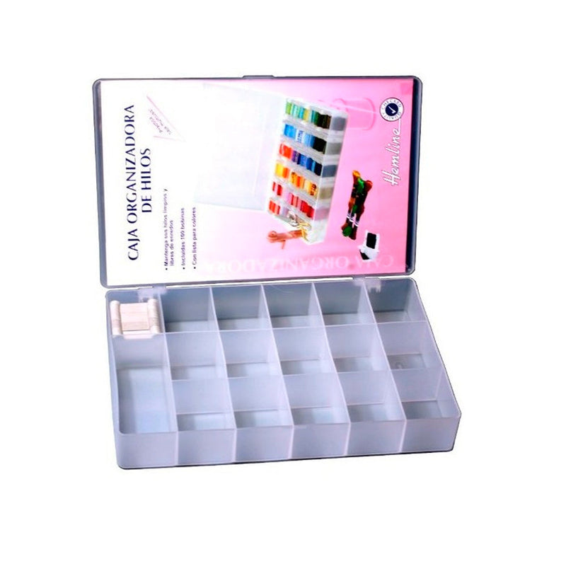Organiza os teus fios de costura de forma impecavel com a Caixa Organizadora de Fios da marca Castelltort. Esta caixa espacosa permite te manter os teus fios limpos e livres de emaranhados, facilitando o teu trabalho com a maquina de costura. Alem disso, inclui 100 bobinas de cartao e uma pratica lista de cores para te ajudar a identificar rapidamente cada um dos teus tesouros de costura. Com dimensoes de 27 x 18 x 3.9 cm e 18 contêineres, esta caixa e a ferramenta de costura ideal para manter a tua area de trabalho organizada e colorida. Com a Caixa Organizadora de Fios, teras todas as as tuas ferramentas de costura à mao, prontas para criar os teus projetos mais incríveis.