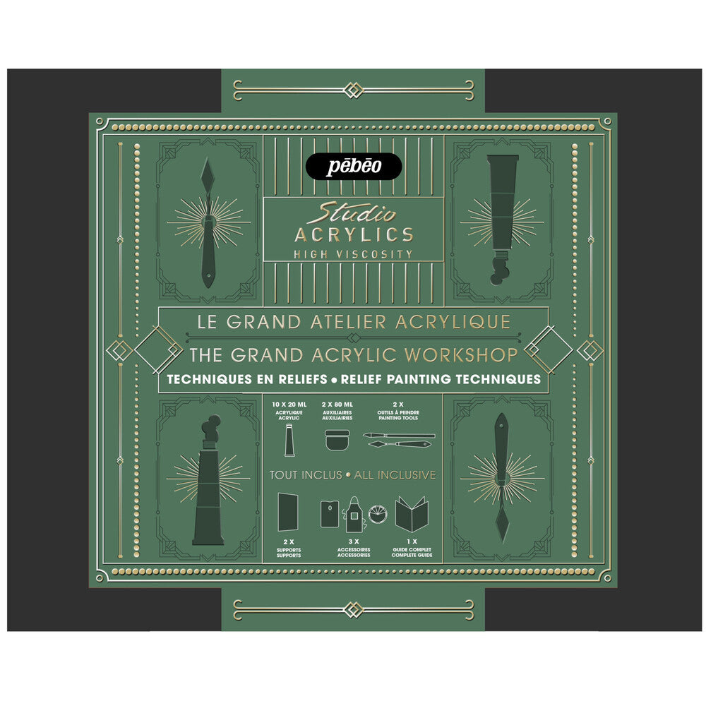 Contenido del Grand Atelier Técnicas en Relieve de Acrílico de la marca Pebeo: