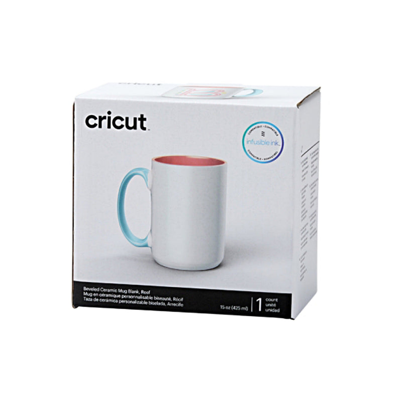 Esta Caneca de Cerâmica Biselada Tricolor Branco, Azul e Vermelho, modelo Coral de 425ml da marca Cricut Joy e simplesmente encantadora! Com um design único e vibrante, esta caneca traz um toque de cor especial ao teu dia a dia. Feita em cerâmica de alta qualidade, esta peca apresenta um acabamento suave e uma superfície plana perfeita para transferências de cor impecaveis e rapidas com a tua prensa de canecas e o material Infusible Ink.