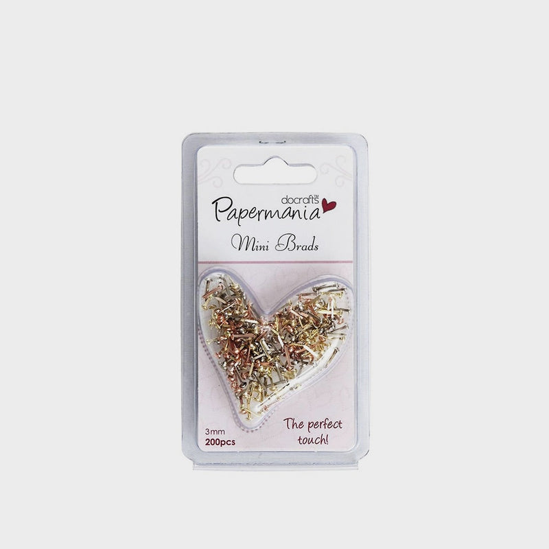 Este conjunto de 200 Mini Encuadernadores Metalicos da marca Papermania e simplesmente incrível! Com uma variedade de tonalidades em prata, ouro e cobre, estes encuadernadores de 3 mm sao perfeitos para dar um toque especial aos teus projetos de scrapbook. Ideais para utilizares no teu papel para convites, album de fotos, caderno de scrapbook e em muitos outros produtos de papel. Com estes encuadernadores, as tuas ideias de scrapbook vao ganhar vida de forma criativa e única. Nao percas a oportunidade de adicionar este conjunto de encuadernadores à tua colecao de papelaria criativa!