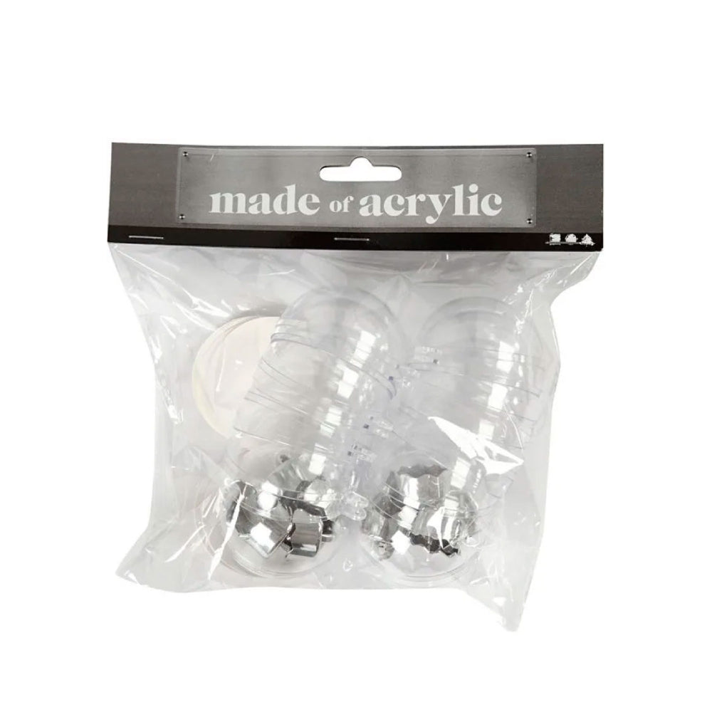 Enfeite de bola de plástico suspensa de duas peças para decorar com tinta ou preencher com enfeites e itens colecionáveis.