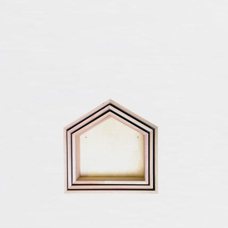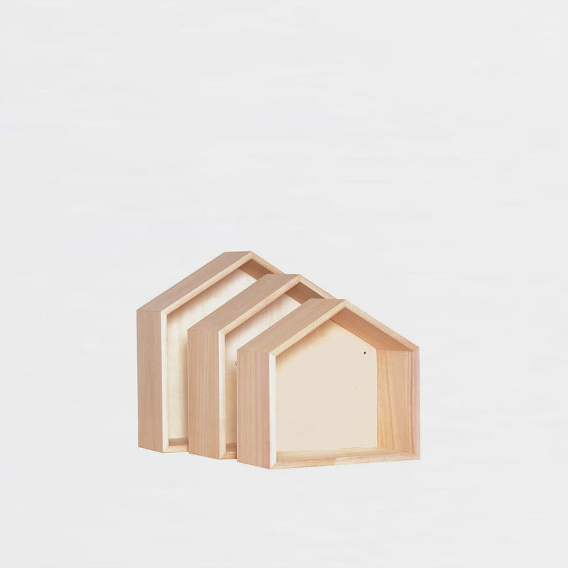 Este conjunto de 3 prateleiras empilhaveis em forma de casa da Casa Artemio e simplesmente encantador! Feitas em madeira, estas prateleiras sao perfeitas para os teus trabalhos manuais criativos. Podes decora las com decoupage em madeira, papel decoupage, ou ate mesmo com vinil adesivo para dar um toque único ao teu espaco. As casinhas vêm em três tamanhos diferentes: a grande com 30 x 30 x 10 cm, a media com 27 x 26,5 x 10 cm, e a pequena com 24 x 22,5 x 10 cm. Com este conjunto, poderas criar composicoes únicas em qualquer divisao da tua casa, desde a sala ao quarto das criancas. Deixa a tua imaginacao voar e da um toque moderno e personalizado às tuas paredes com estas adoraveis prateleiras em forma de casa. Transforma a tua casa num espaco único com este conjunto de prateleiras Casa Artemio!
