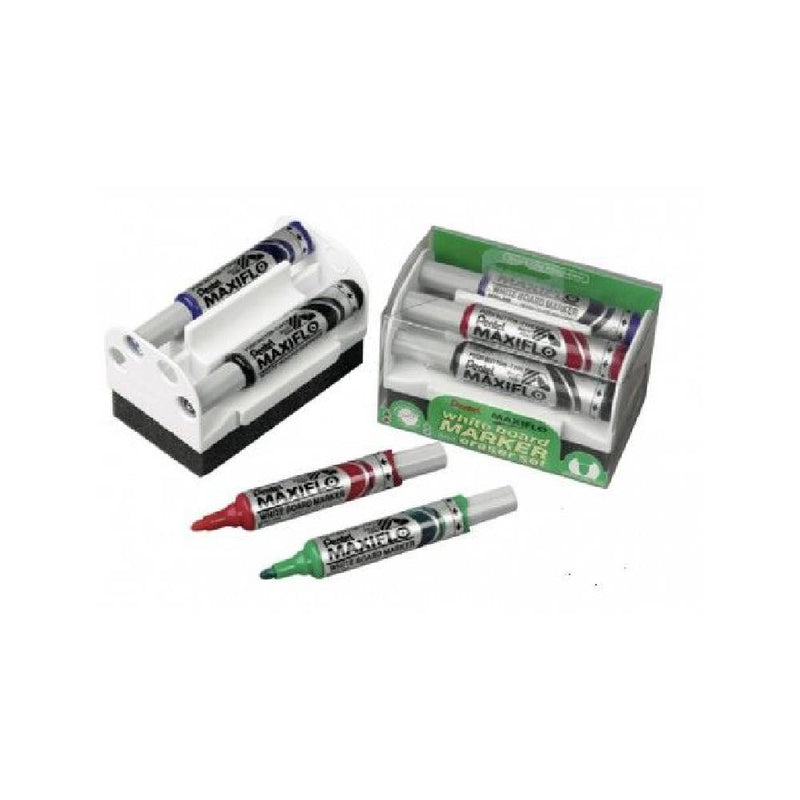 Este conjunto de 4 marcadores Quadro Branco + Apagador da Pentel e simplesmente incrível! Com os marcadores Maxiflo em preto, vermelho, azul e verde, vais poder dar asas à tua criatividade e organizacao. Alem disso, o apagador de pizarra incluído e super pratico, com um gancho para o pendurares na tua pizarra. Ideal para o teu material escolar ou para o teu escritorio, este conjunto e uma verdadeira mais valia. Apresentado num blister, e perfeito para ti que adoras artigos de papelaria de qualidade. Aproveita ja este conjunto e da um toque especial às tuas apresentacoes e notas!