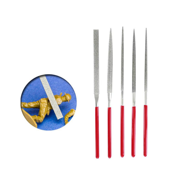 Este conjunto de 5 mini limas de diamante da marca Vallejo e simplesmente incrível para os teus projetos de maquetes! Com diferentes perfis plano, quadrado, redondo, meia cana e triangular estas limas de 100 mm sao perfeitas para trabalhos de precisao em superfícies pequenas, moldando e lixando metal ou plastico. O melhor de tudo e que nao aquecem durante o uso e o grao nao se desgasta, garantindo um acabamento impecavel nas tuas criacoes. Com este conjunto, as tuas maquetes vao ganhar um novo nível de detalhe e perfeicao. Experimenta ja estas limas de diamante e eleva as tuas maquetes a um patamar superior!