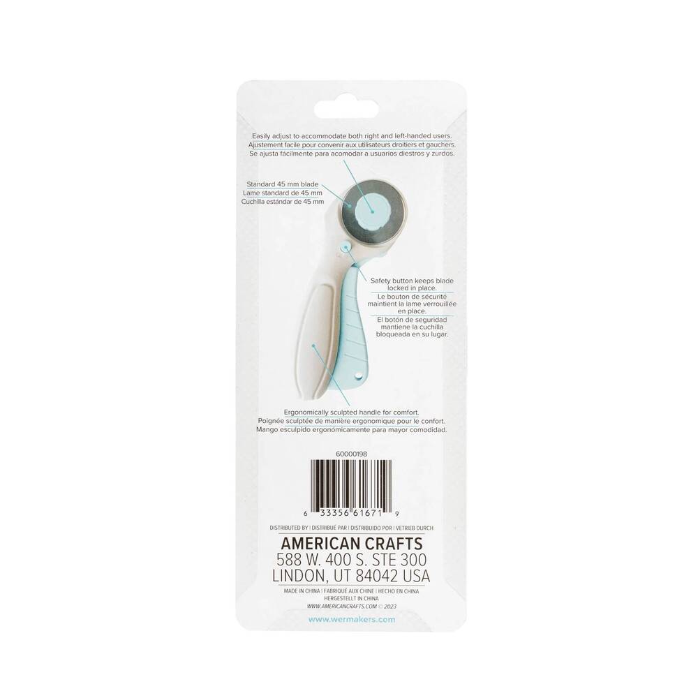 El Cúter Giratorio de We R Makers realiza cortes precisos y suaves sobre tela, papel, fieltro, vinilo... y más. Su diseño ergonómico reduce la fatiga de la mano y, además, es compatible con otras cuchillas de 45 mm del mercado, aportando versatilidad y comodidad para diestros y zurdos.