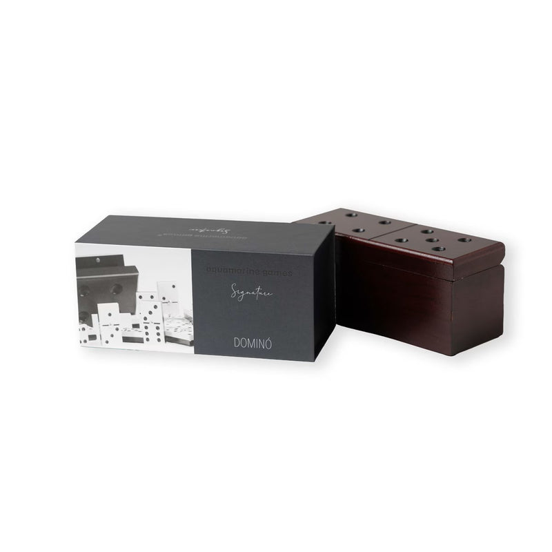 Diverte-te a jogar este clássico jogo de dominó da coleção Signature da Aquamarine . Possui um elegante acabamento em madeira e um design compacto, para que o possa levar para qualquer lugar. Fará sucesso nas reuniões de família!