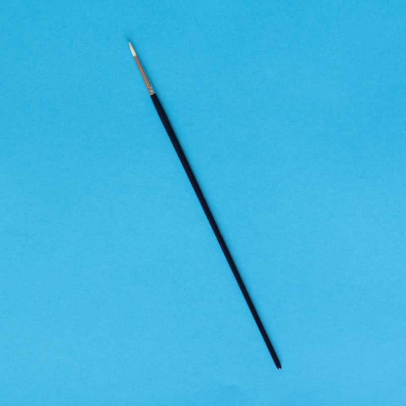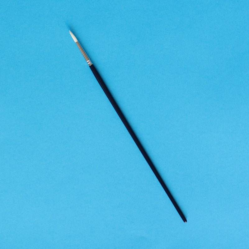 Esses pincéis da série 211, de Van Gogh , Talens, são feitos de cerdas Chungking. Este é um pincel de cabo longo lacado em azul.