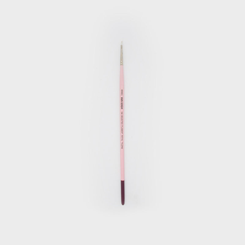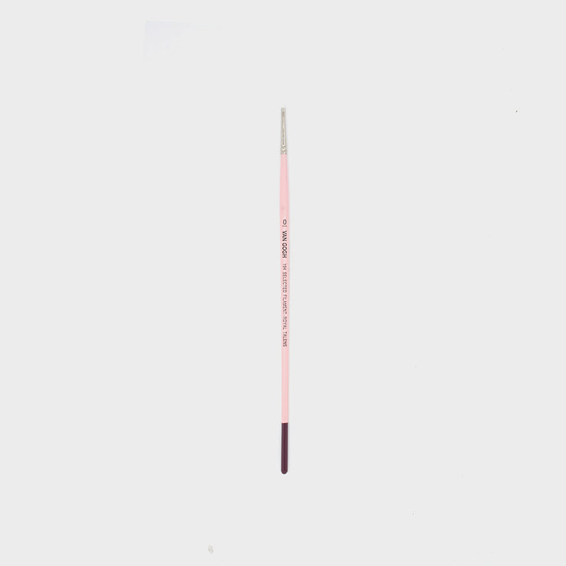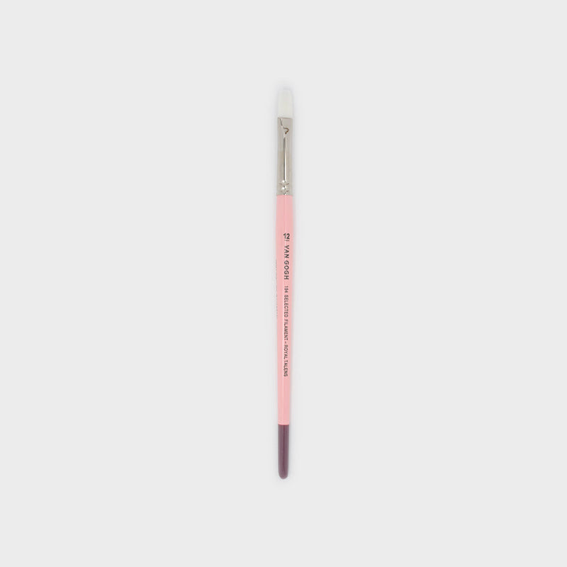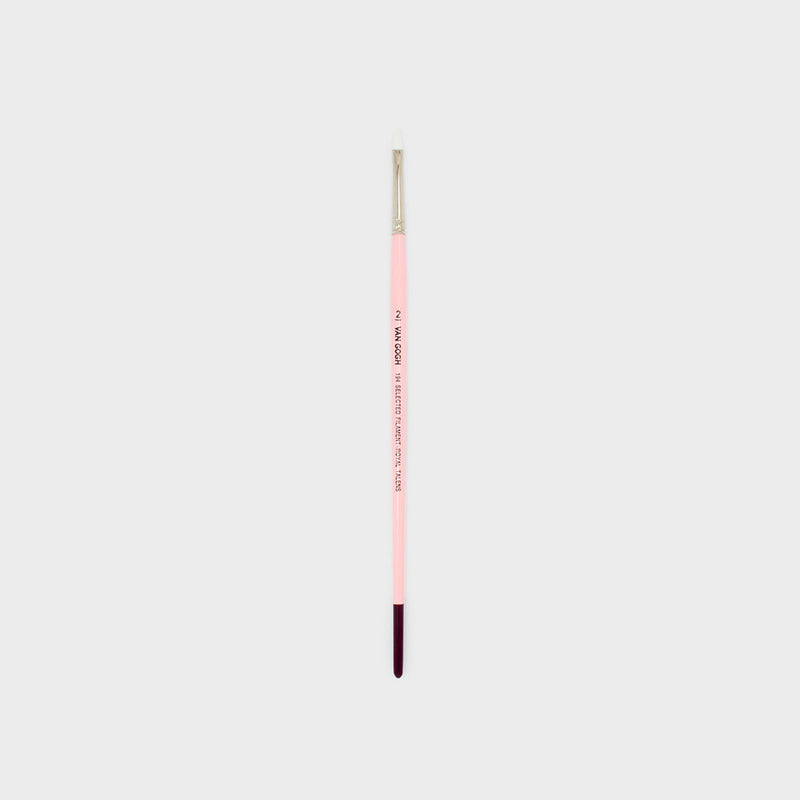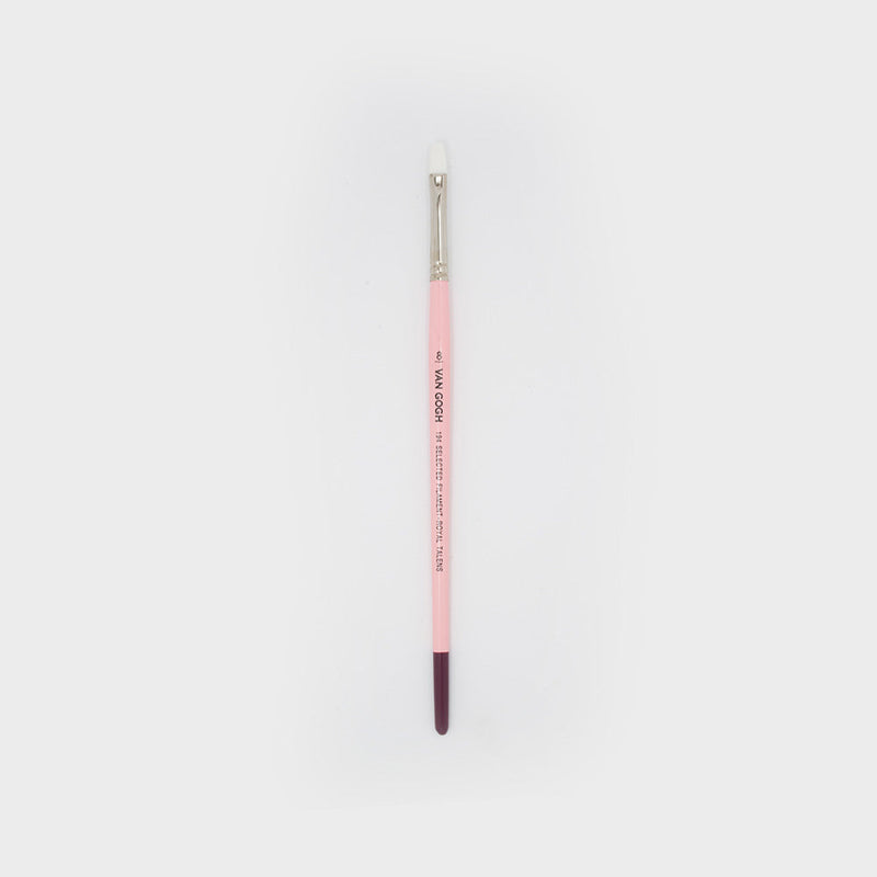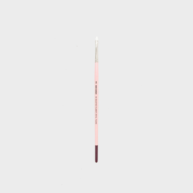 Pincel sintético para aquarela rosa de cabo curto, série 154 plano, da marca Van Gogh.