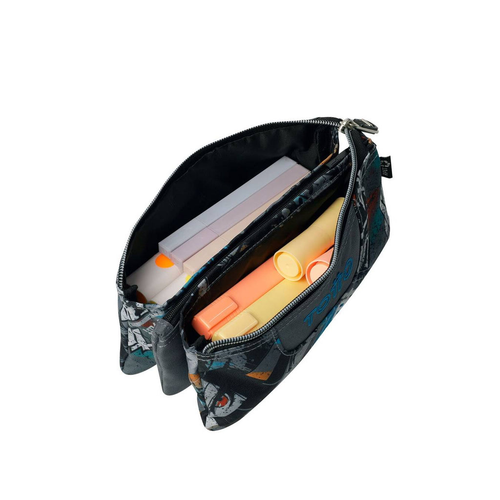 Estojo escolar Totto Dark Grey Anime com 3 bolsos