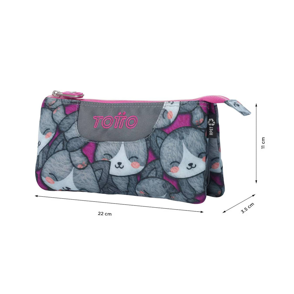 Com este estojo Totto com 3 bolsos , pode organizar e guardar todos os seus materiais escolares. Adquira este encantador design de gatinho, ideal para quem adora animais, e mantenha o estilo. Mantenha todos os seus materiais em ordem!