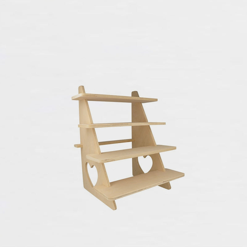 Este expositor de madeira com 4 prateleiras e coracoes recortados nas laterais e simplesmente encantador. Com dimensoes de 32x38x26cm, este movel da marca Artemio e perfeito para os teus trabalhos manuais criativos. Podes utiliza lo em eventos como casamentos, batizados, comunhoes e babyshowers, colocando nele pequenos detalhes, doces, cartoes e outros objetos. Personaliza o ao teu gosto com tintas para madeira, papeis decoupage, stencils ou marcadores multisuperfície. Este objeto único e original e uma verdadeira tela em branco para a tua criatividade. Nao percas a oportunidade de dar o teu toque especial a este expositor. Dimensoes: 32x38x26 cm. Codigo do produto: 14003337.