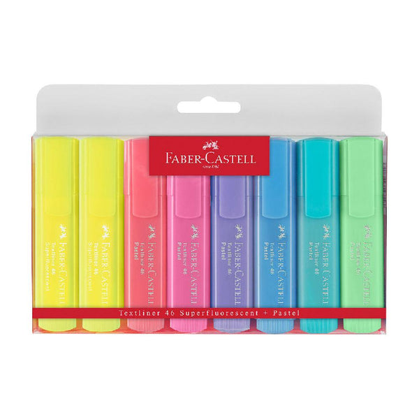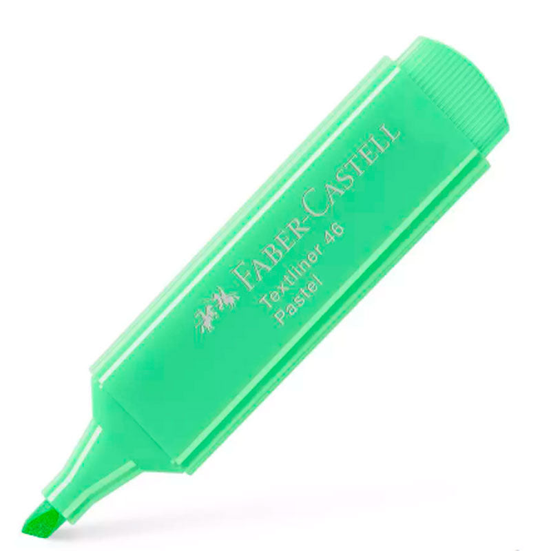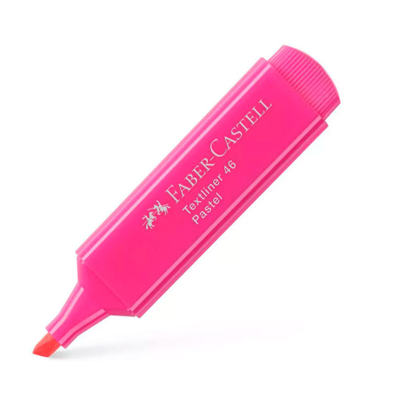 Marcador Textliner 46 Pastel, com ponta cinzel, da marca Faber-Castell.