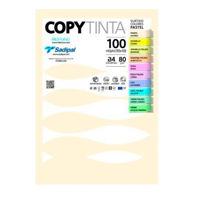 Este conjunto de 100 folhas de cores palidas A4 da marca CopyTinta e simplesmente incrível! Com 10 folhas de cada cor, estas folhas sao conhecidas pelos seus tons intensos que vao dar vida aos teus trabalhos escolares ou de escritorio. Com cores como Marfim, Amarelo, Amarelo Palido, Laranja Palido, Rosa, Rosa Palido, Lilas, Azul Palido, Verde Palido e Verde, tens uma variedade incrível para escolher. Com um total de 100 folhas e um peso de 80gr, estas folhas sao perfeitas para dar um toque especial aos teus projetos. Adquire ja as as tuas Folhas Cores Palidas A4 100 Folhas CopyTinta e deixa a tua criatividade fluir!