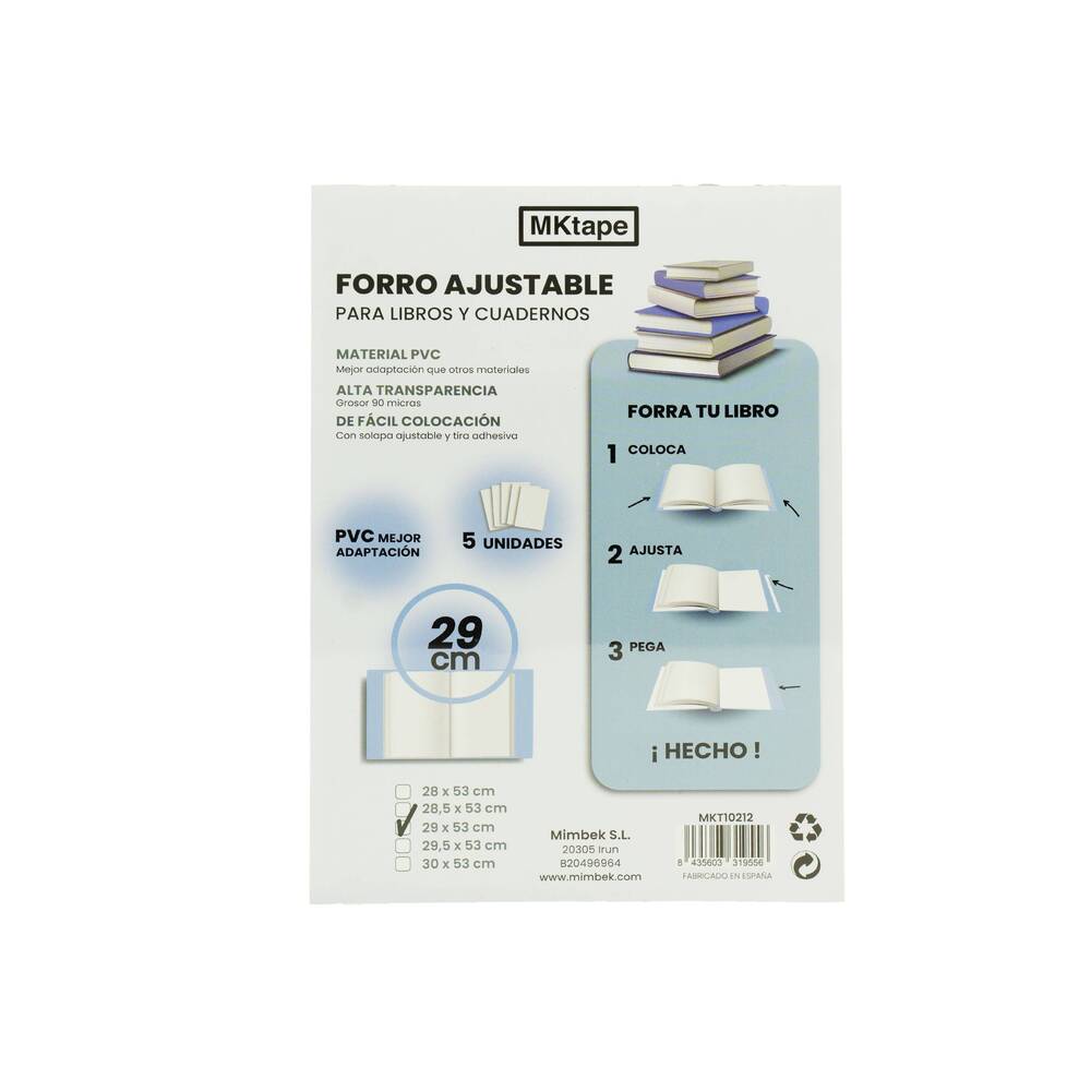 Cada uma das 5 capas incluídas neste pacote mede 29x53 cm, perfeita para uma grande variedade de livros ou cadernos.