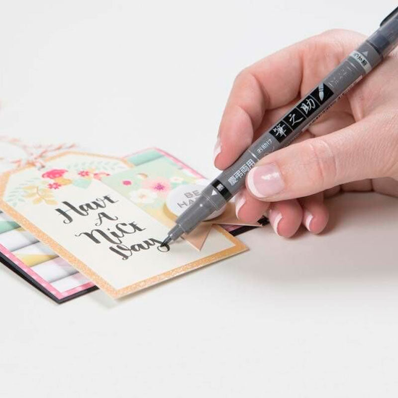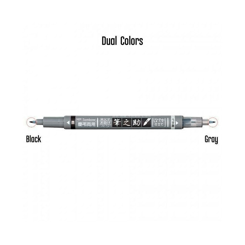 Fudenosuke Marcador Tombow Cinza e Preto de Ponta Dupla