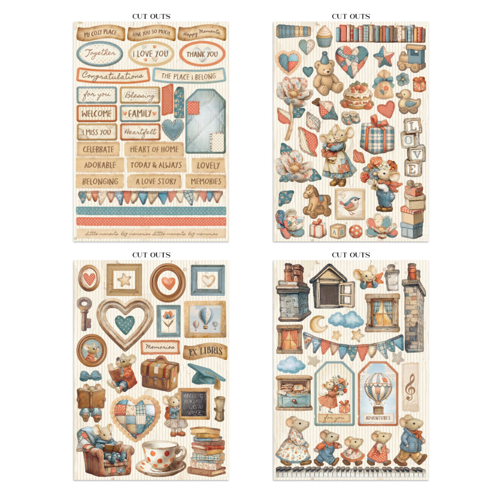 Destacan los tonos crema y los adorables ratoncitos en situaciones familiares que te enamorarán. En este Junk Journal vas a encontrar todos los básicos que necesitas para un proyecto de scrap (papeles, pegatinas y recortables). Podrás emplearlos todos en tu obra o combinarlos con otros soportes que tengas, dependiendo del resultado final que desees obtener, ¡La elección es tuya!