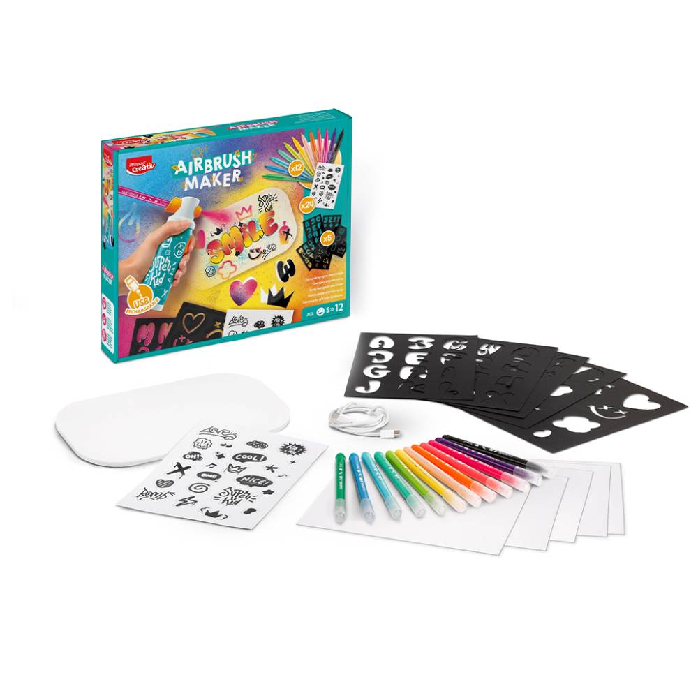 Contenido del Kit con Aerógrafo Airbrush Maker Infantil de la marca Maped: