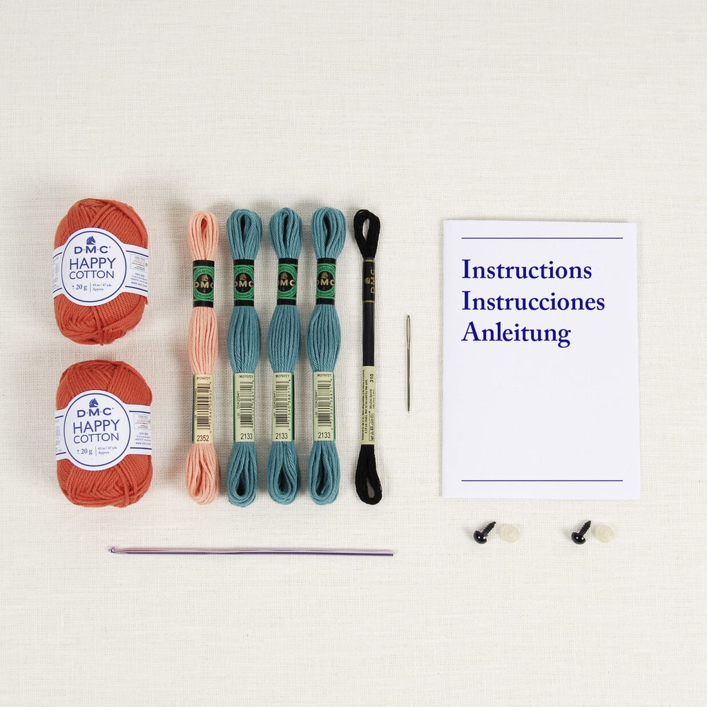 O kit inclui todos os materiais necessários para fazer um caranguejo fofo em croché, com instruções claras em espanhol, inglês e francês , bem como um prático código QR que dá acesso aos guias noutras línguas, como português, italiano, alemão e holandês . Ideal para crocheteiras criativas!