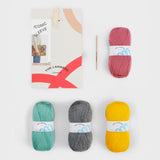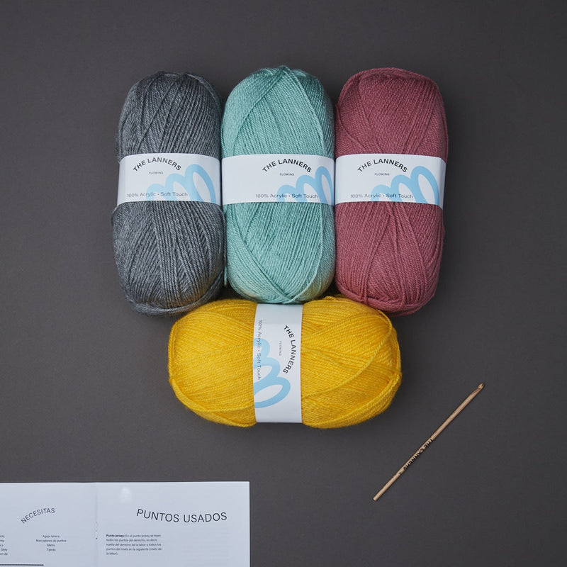Com 4 novelos de la flowing em diferentes cores Light Pink, Med Grey, Yellow e Greenish Grey e uma agulha de crochet de 4mm, teras tudo o que precisas para tecer a tua propria capa de portatil. O padrao incluído torna o processo ainda mais simples.