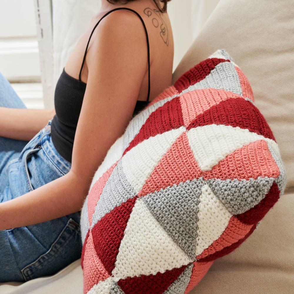 Neste Kit Almofada Geo The Lanners, vais poder criar uma almofada com um padrao geometrico único. O kit inclui tudo o que precisas para tecer a tua propria almofada com estampado de triângulos: 1 novelo de la Flowing Burgundy, 1 novelo de la Flowing Gum Pink, 1 novelo de la Flowing Light Grey e 1 novelo de la Flowing White, agulhas de crochet de 4mm e o padrao. Com medidas de 40x40 cm, este projeto e ideal para quem procura um desafio basico. A la Flowing e composta por fibras acrílicas de alta qualidade, garantindo durabilidade e uma textura suave ao toque. Para cuidar das tuas criacoes, lava a 30°C, evita usar lixívia, secadora e ferro de engomar. Com este kit, vais poder criar uma almofada única e cheia de estilo, perfeita para decorar o teu espaco com um toque artesanal e personalizado.