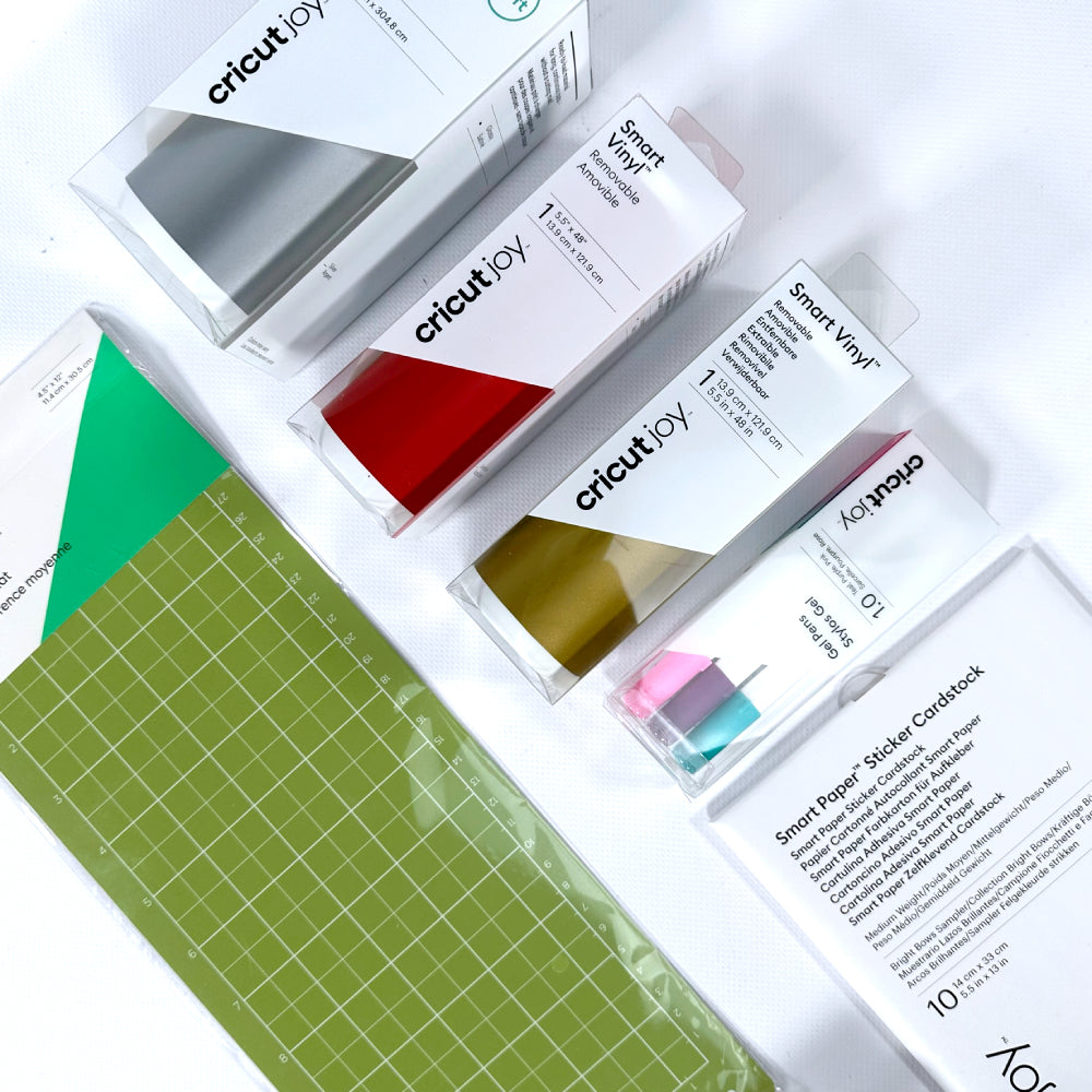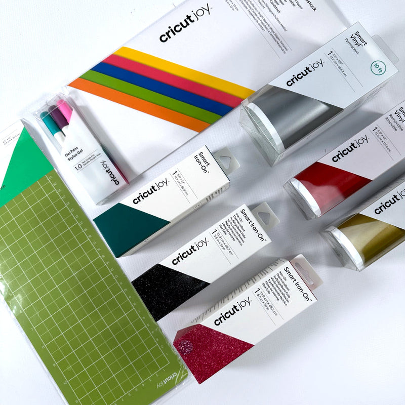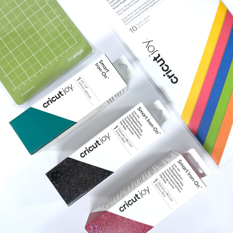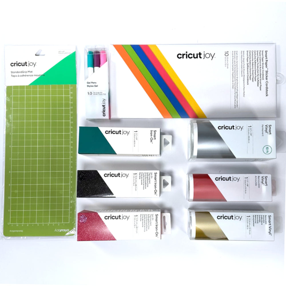 Este kit e perfeito para complementar a tua maquina Cricut Joy e inclui um Tapete de corte StandardGrip Mat, Vinilo Smart Iron On™ Glitter Negro, Set 3 Rotuladores de Gel, Vinilo Removível Ouro, Vinilo Smart Iron On Glitter Rosa, Vinilo Permanente Smart Prata, Vinilo Smart Iron On™ Turquesa, Set Cartolinas adesivas Smart Material e Vinilo Smart Removível Cardinal Red. Com estes materiais, poderas personalizar camisolas, mochilas, cartoes, decoracoes e muito mais, de forma duradoura e criativa.