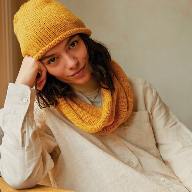 Kit completo para tricotar um Snood e um Cachecol da marca DMC.