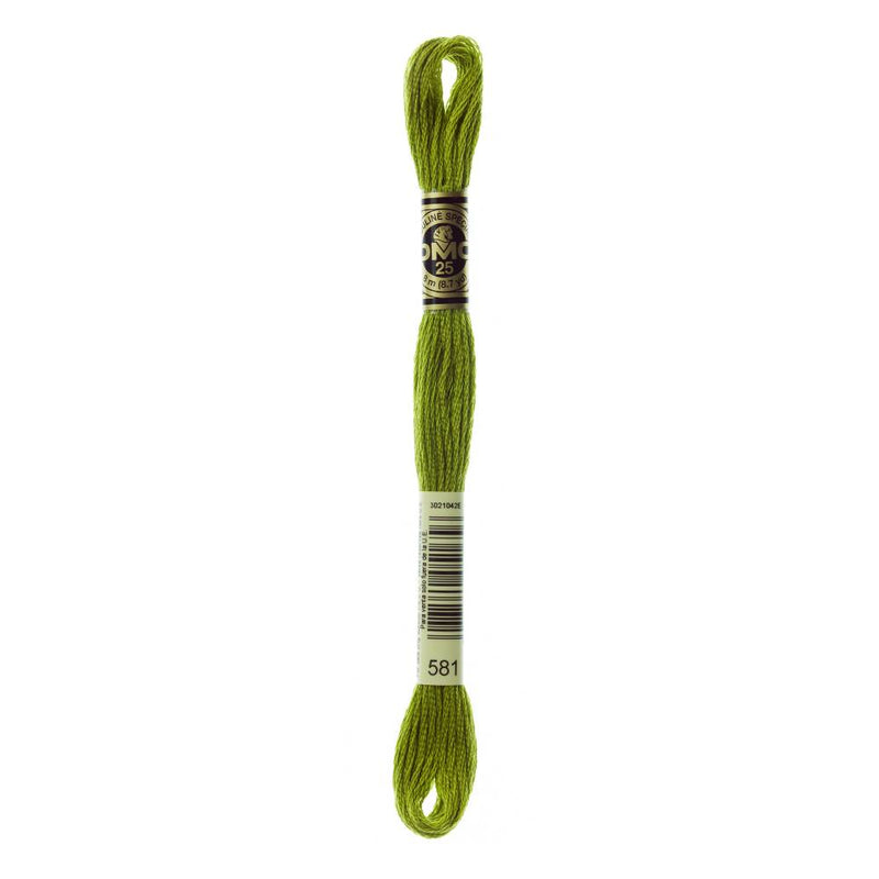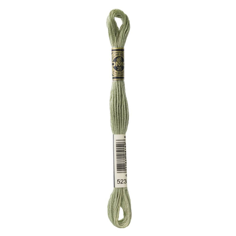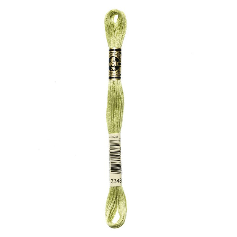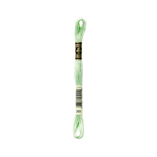 Linha de bordar Mouliné Special 117MC, cores da gama de tons verdes claros, da marca DMC.