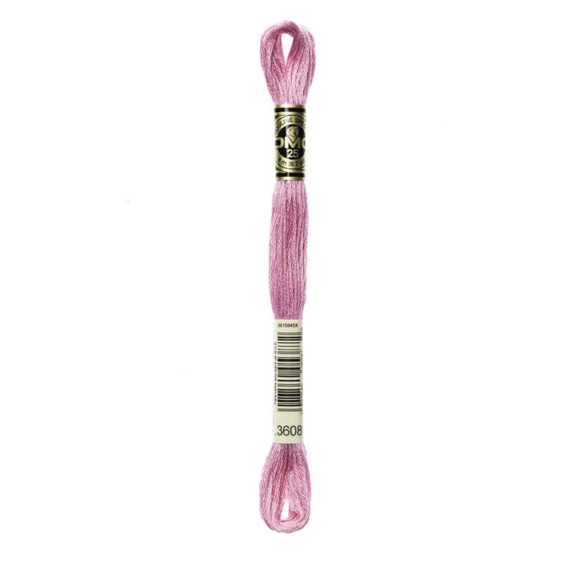 Linha de bordar Mouliné Special 117MC, cores da gama de tons rosa, da marca DMC.