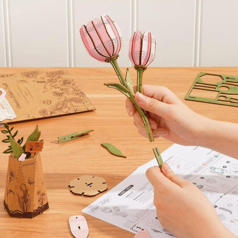 Maqueta de Madera 3D Wooden Bloom Craft Pink Tulip de la marca Robotime
